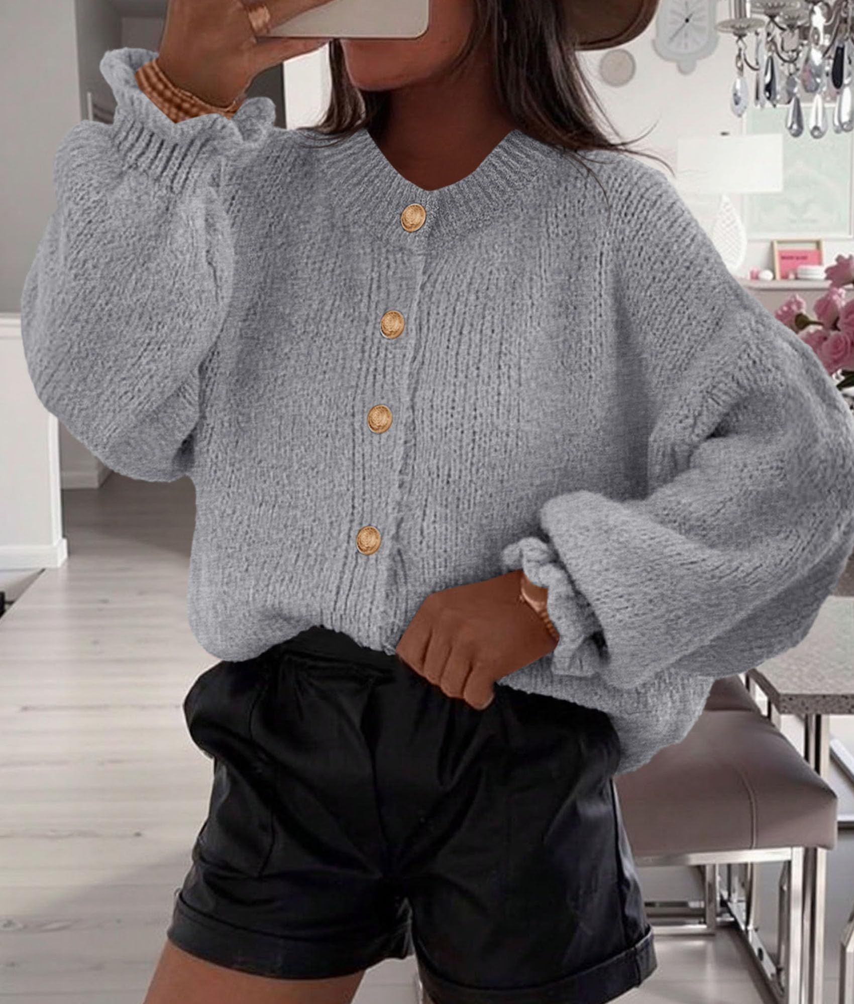 PRETTYGARDEN Womens Cropped Cardigans Trendy PRETTYGARDEN Long Sleeve Cropped Sweaters for Women Ruffle Oversized CardiganRuffle Open Front Chunky Knit Sweater Oversized Button Down Fall Clothes