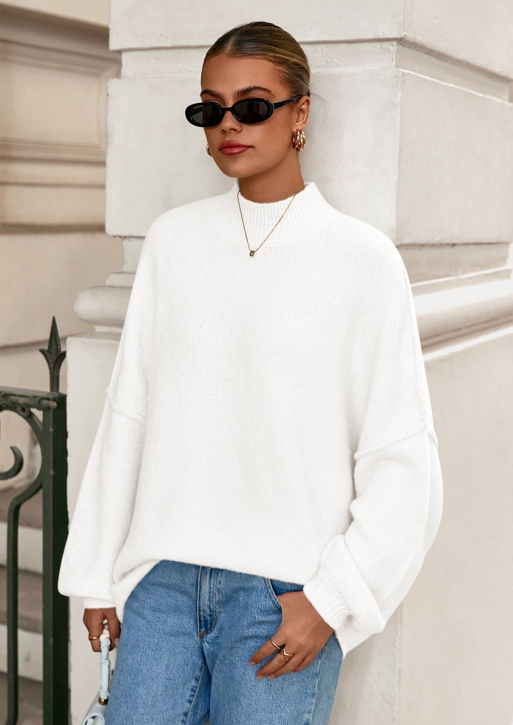 PRETTYGARDEN Women's Fall Oversized Sweaters Chunky Knit Mock Neck Long Sleeve Casual Trendy Pullover Winter Clothes