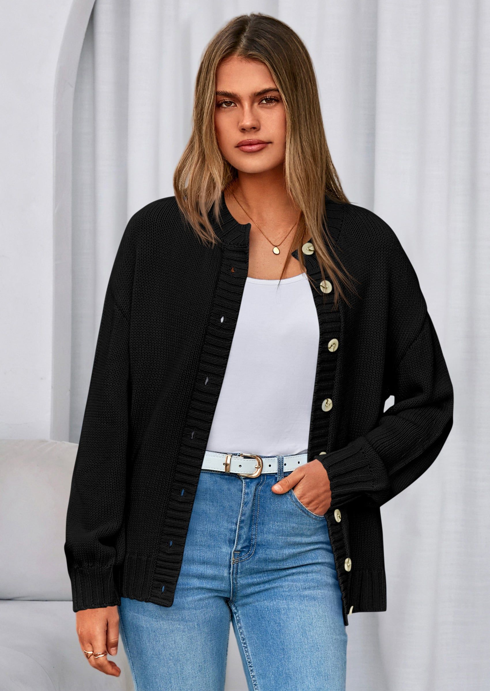 PRETTYGARDEN Women's Winter Cardigan Sweaters Trendy Chunky Knit Long Sleeve Button Up Casual Warm Fall Jackets Coats