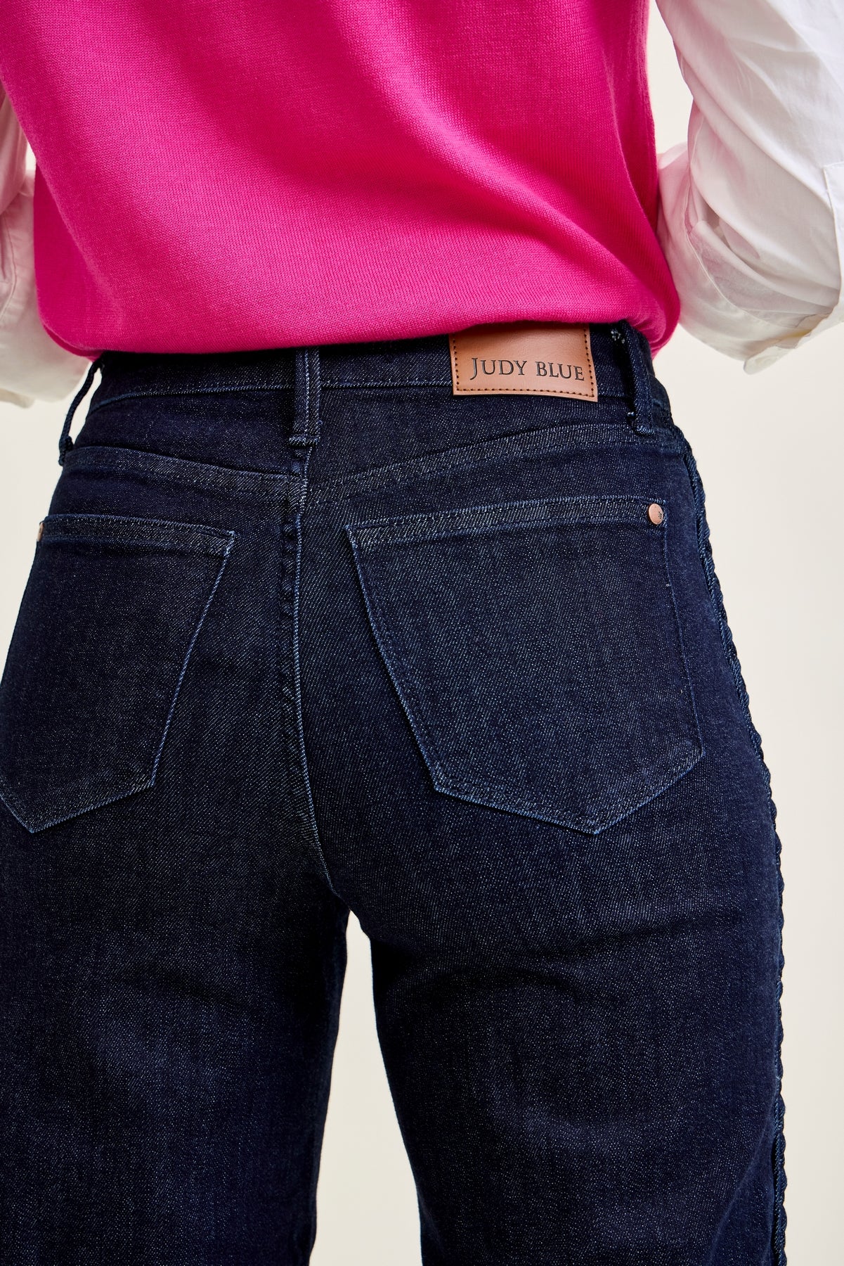 Diana High Rise Side Seam Braid Cropped Wide Leg Jeans