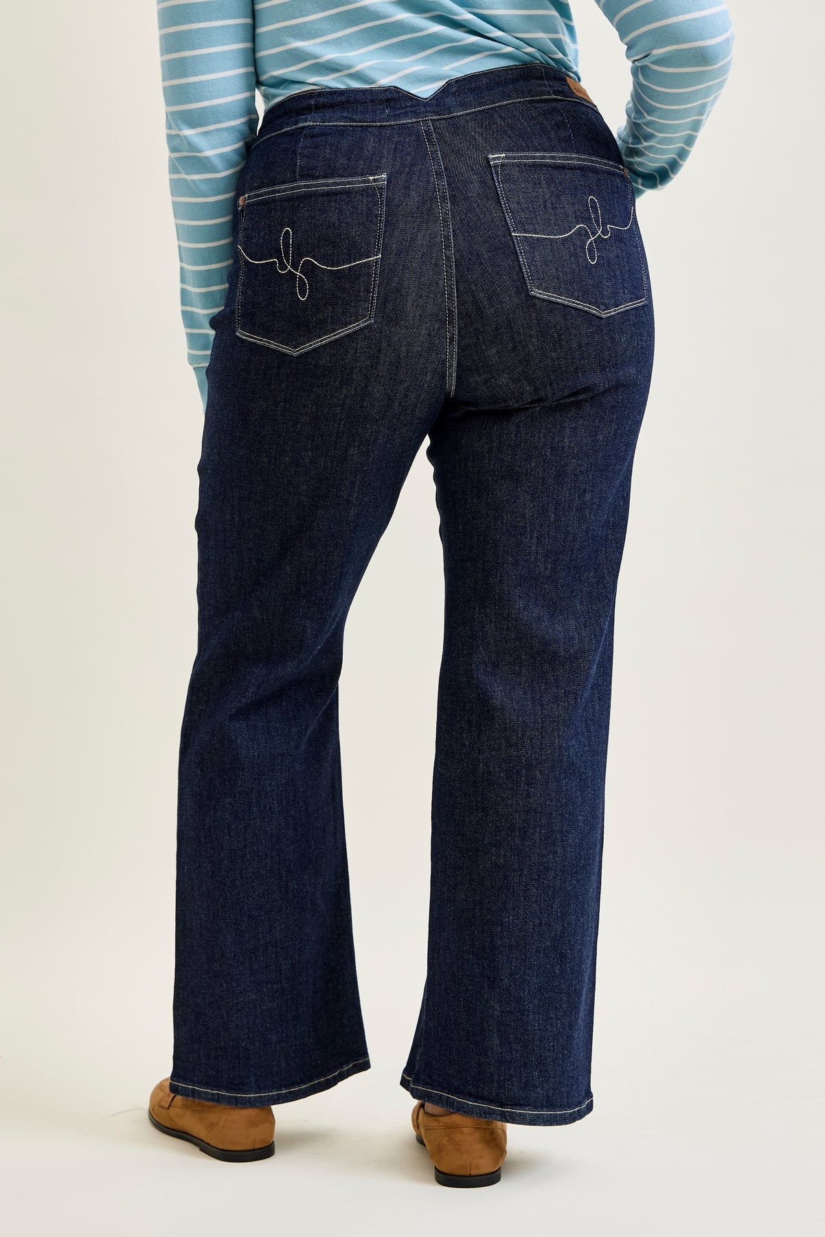 Eliana Rinse Geometric WB & Pkt Emb Wide Leg Jeans - PLUS