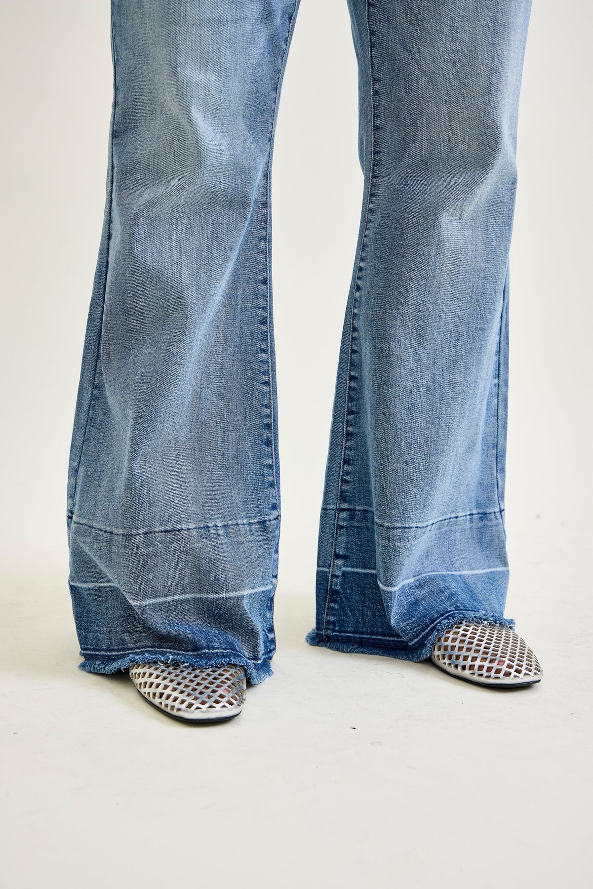 High-rise comfort: The Giselle Tummy Control Release Hem Flare jeans offer a comfortable high-rise fit, with a waistline that sits at 12 1/4 inches above the natural waist, providing excellent coverage and support.