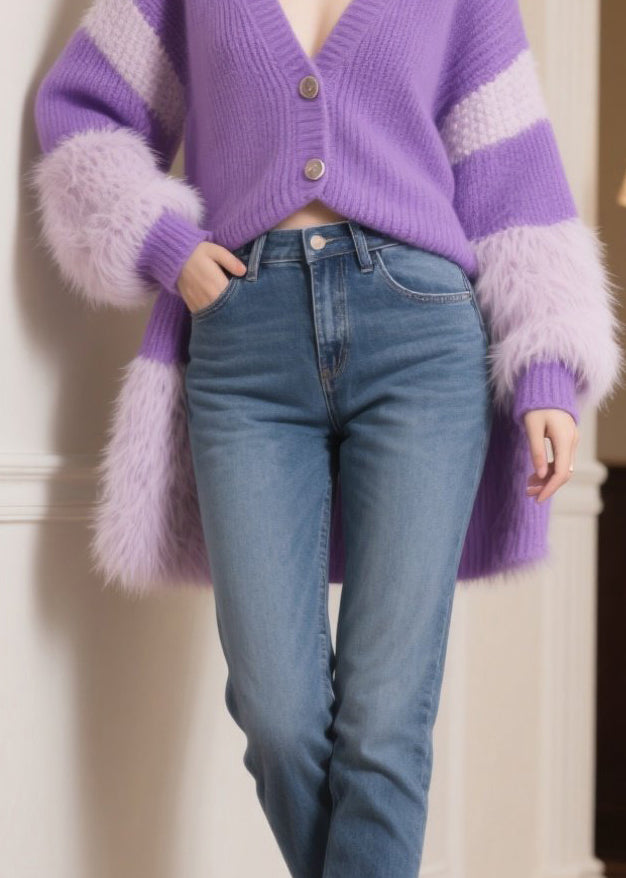 Handmade Purple Oversized Patchwork Faux Fur Knit Cardigans Winter