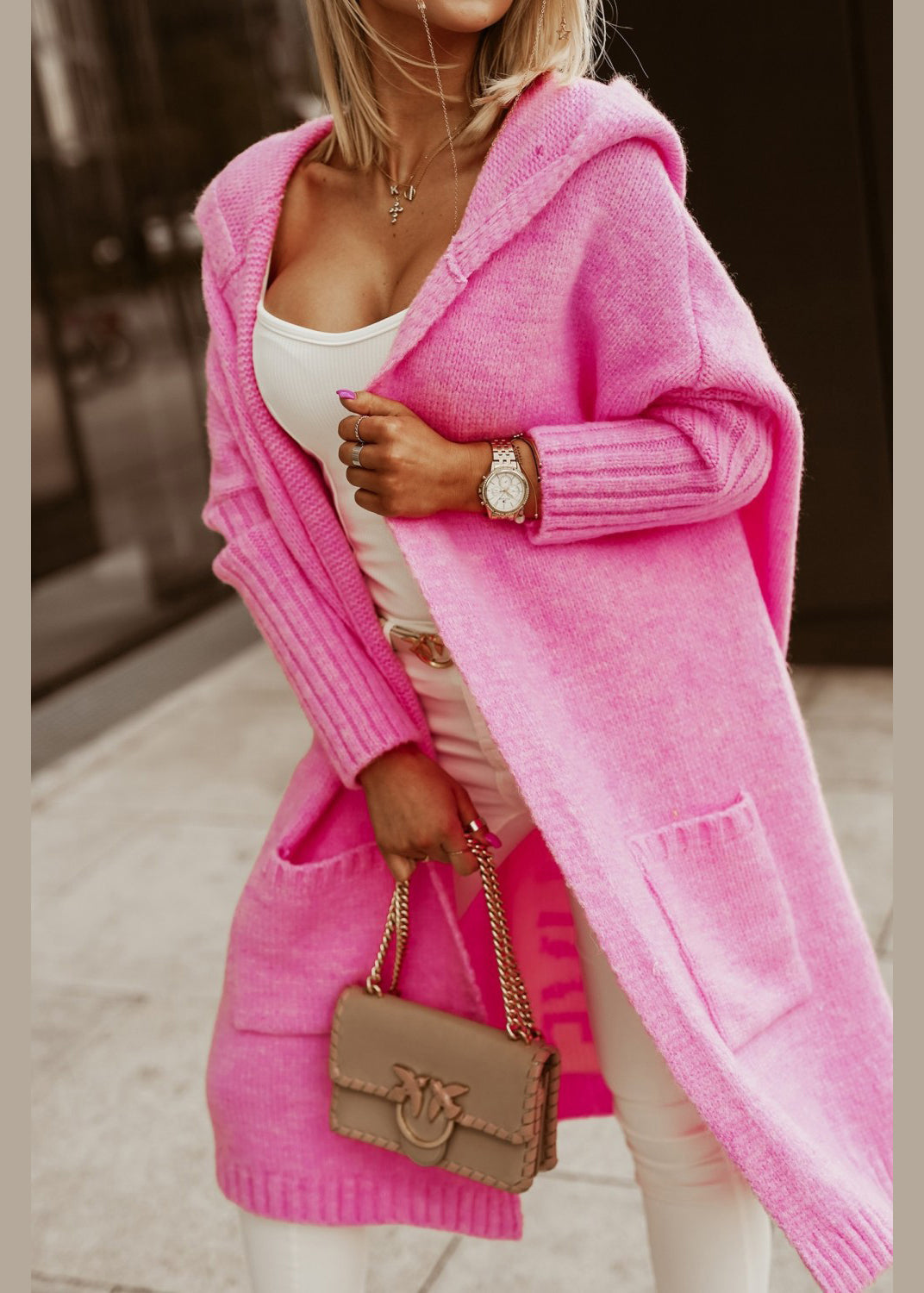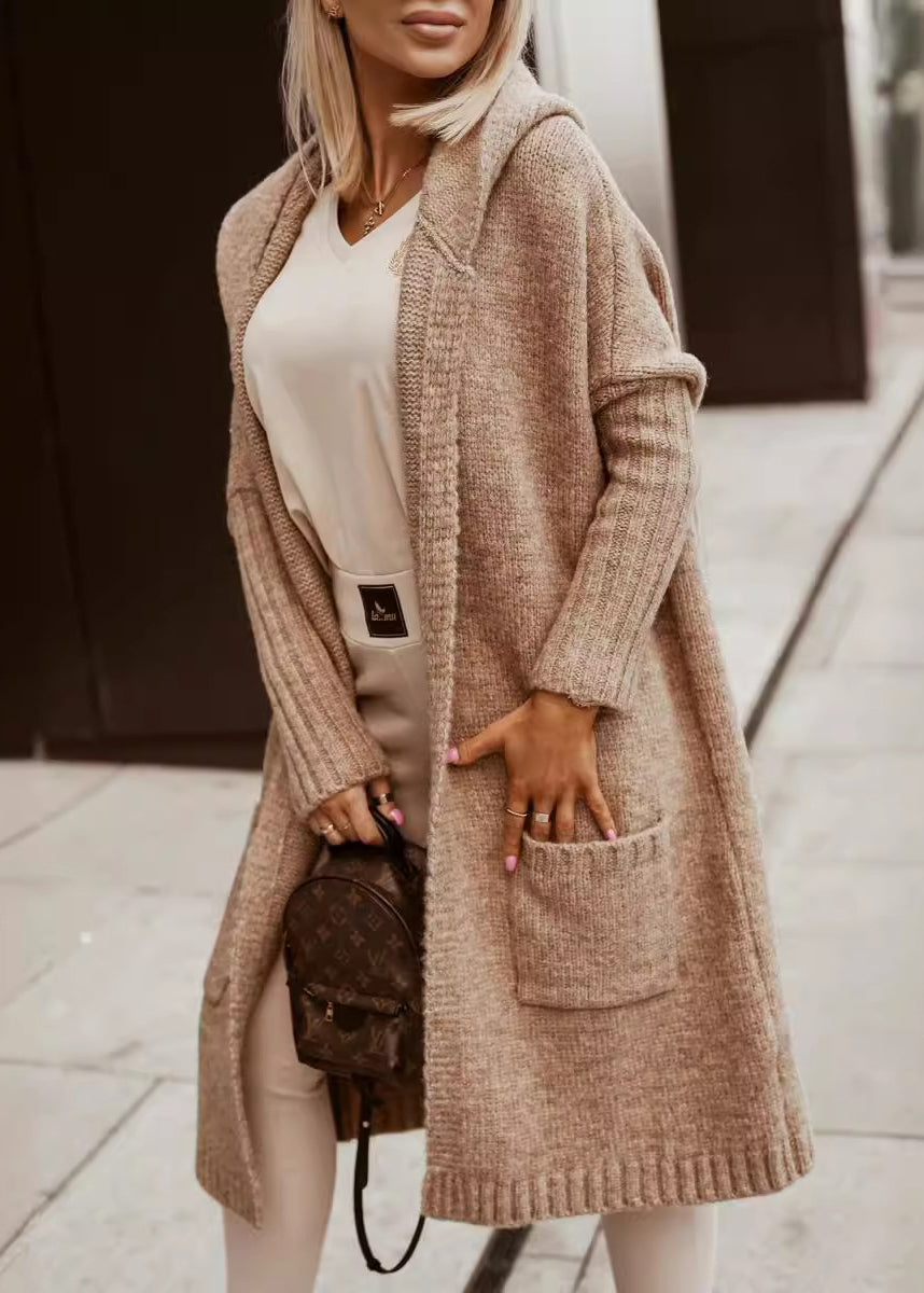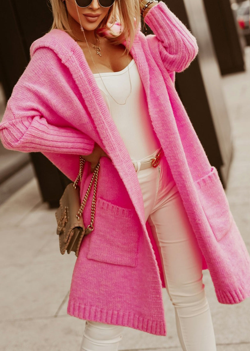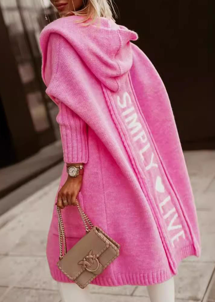 Plus Size Rose Graphic Pockets Knit Hoodie Cardigans Fall