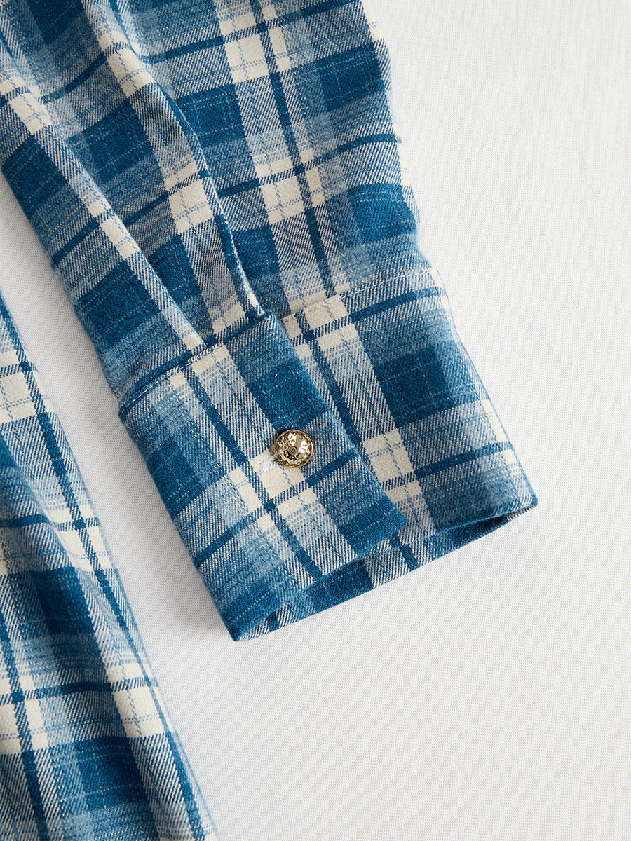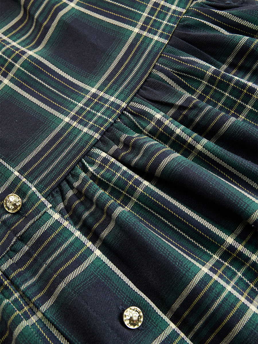 This dress exudes a vintage ethnic charm. The delicate lapel and reddish-brown plaid cleverly blend vintage elements with understated ethnic flair. This flowing dress is elegant and chic, seamlessly blending classic vintage style with ethnic influences, perfect for any outfit.