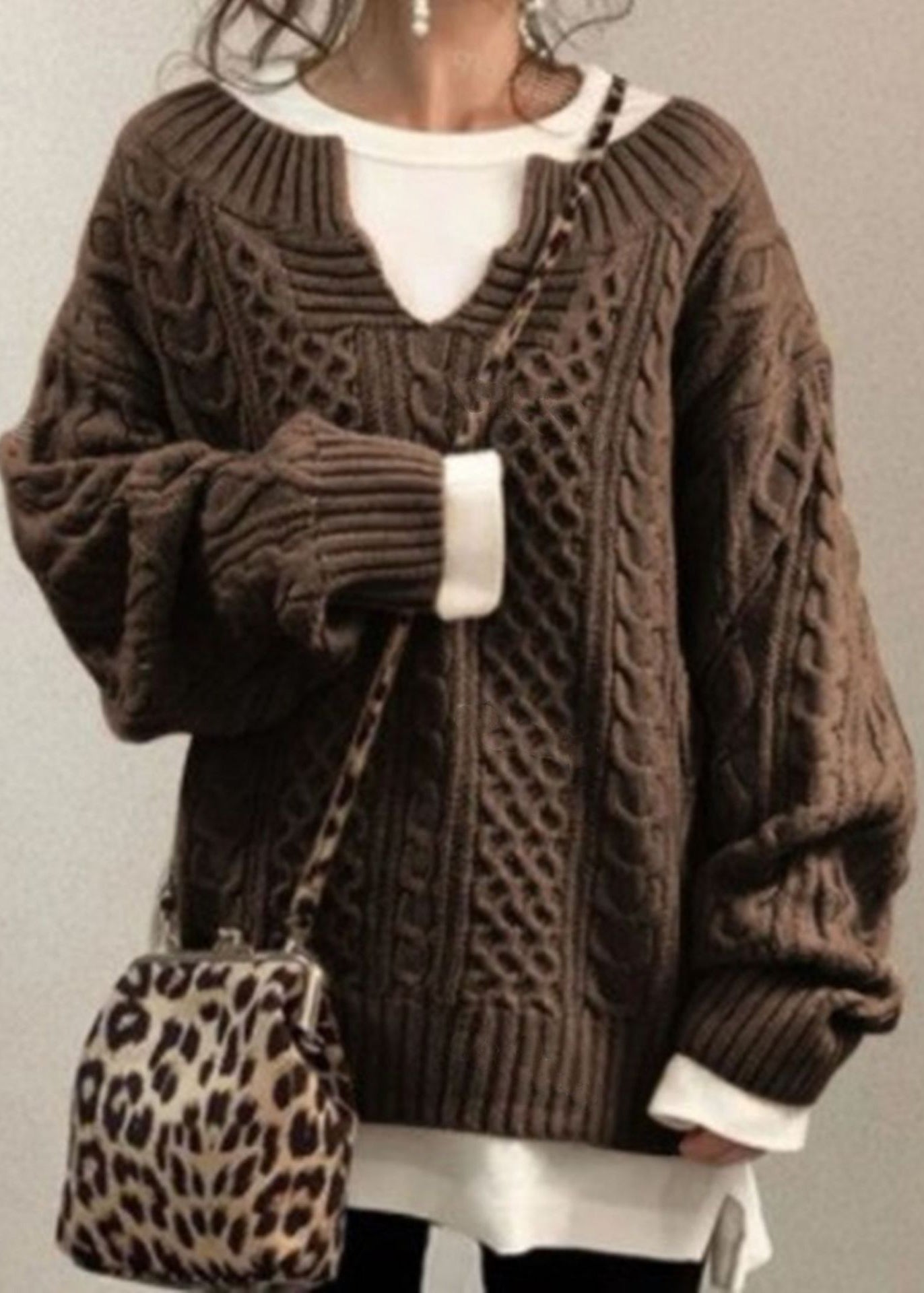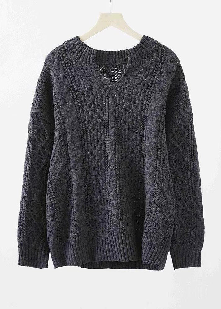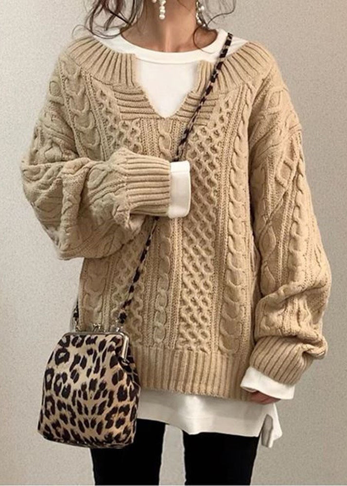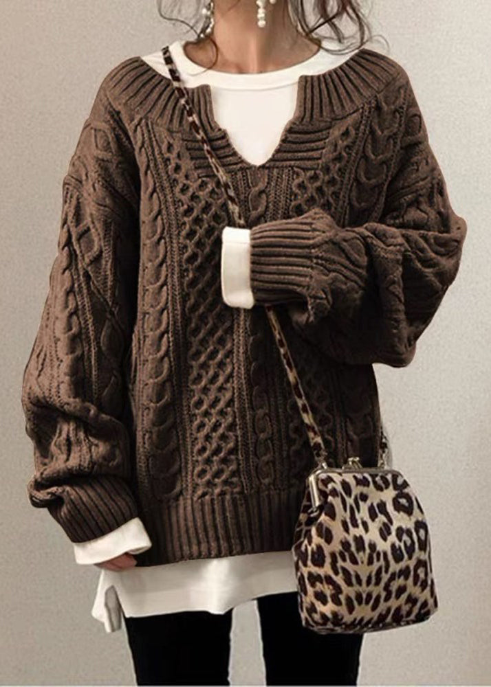 Simple Coffee V Neck Cozy Cable Knit Sweaters Fall