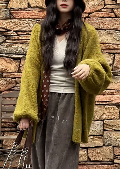 Simple Green V Neck Solid Knit Cardigans Fall
