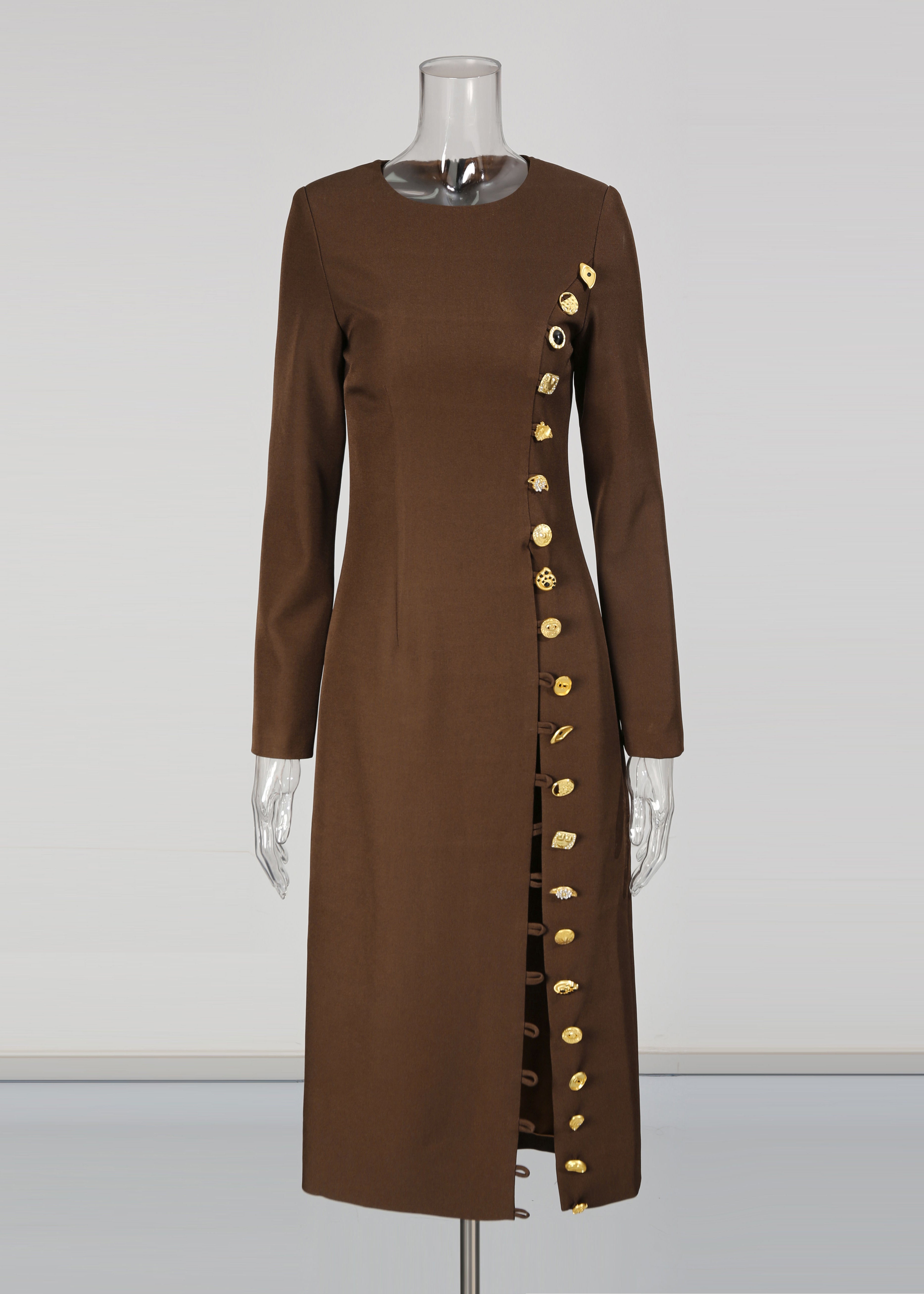 Slim Fit Coffee O-Neck Patchwork Button Trench Coats Fall