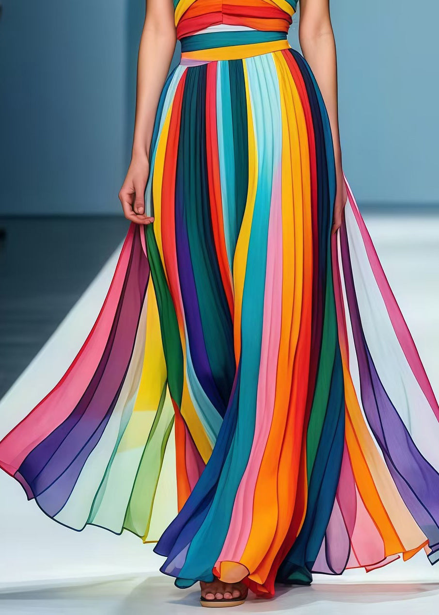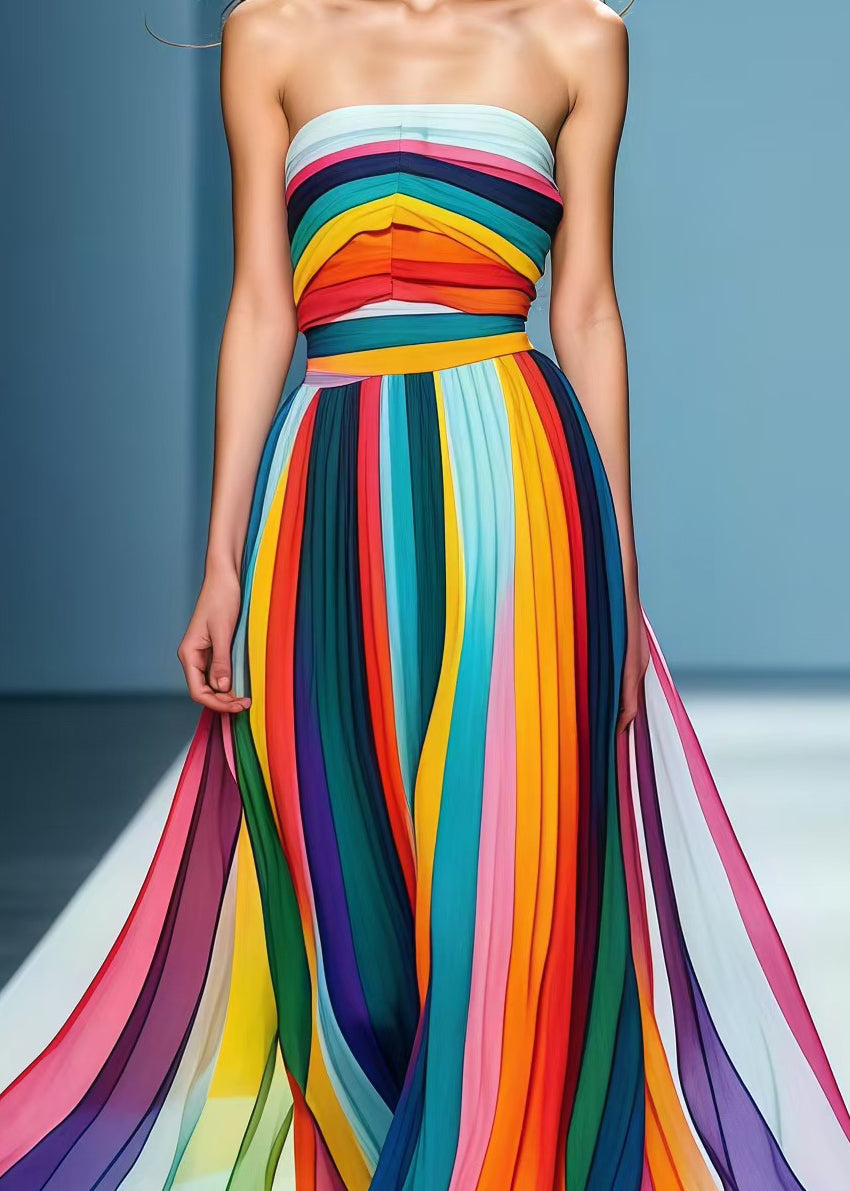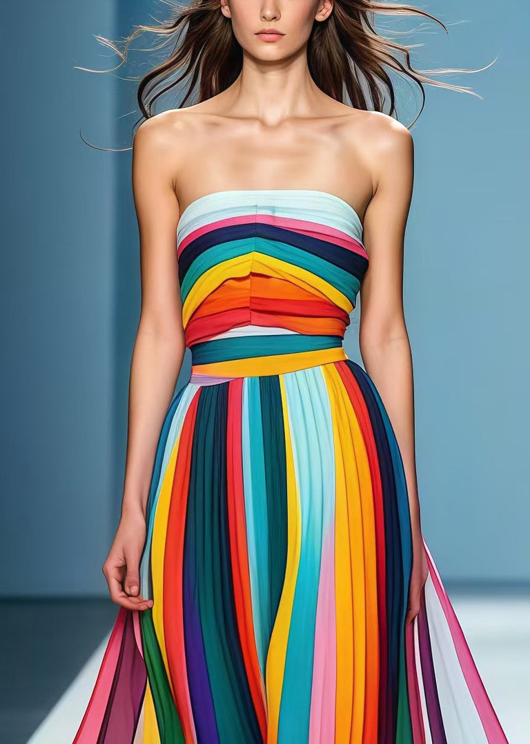Style Rainbow Striped Chiffon Strapless Dress Summer