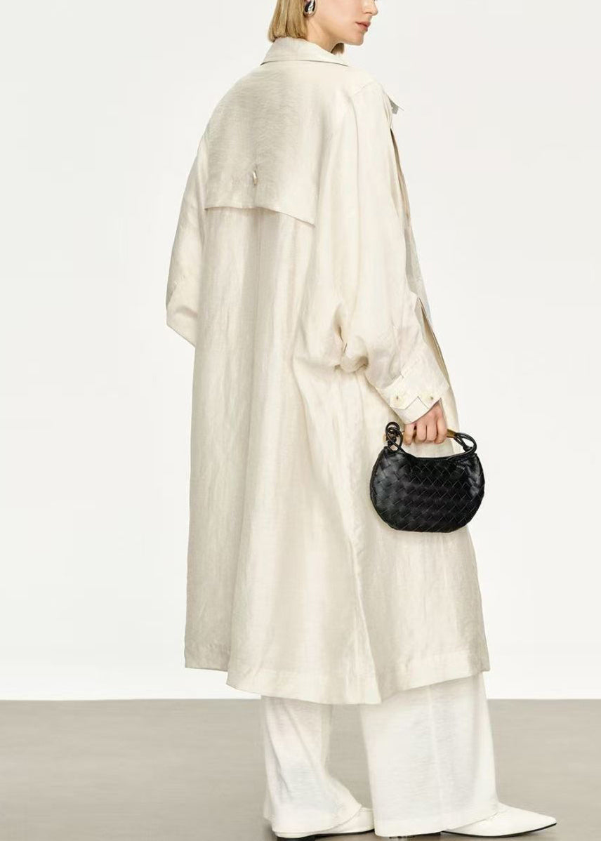 White Pockets Thin Linen Silk Long Trench Coats Peter Pan Collar Batwing Sleeve
