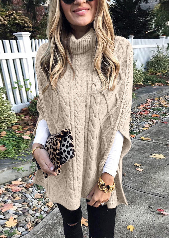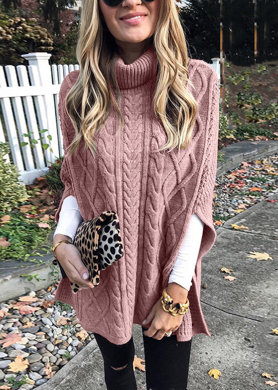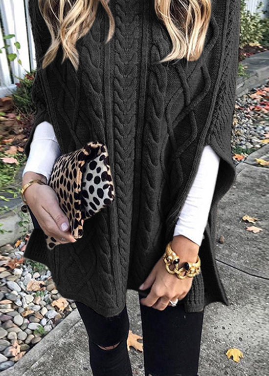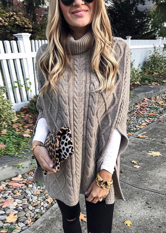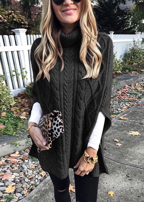Women Grey Hign Neck Thick Knit Sweaters Batwing Sleeve