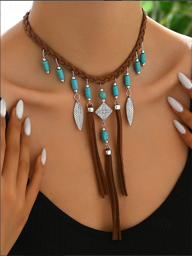 Women's Suede Beaded Necklace