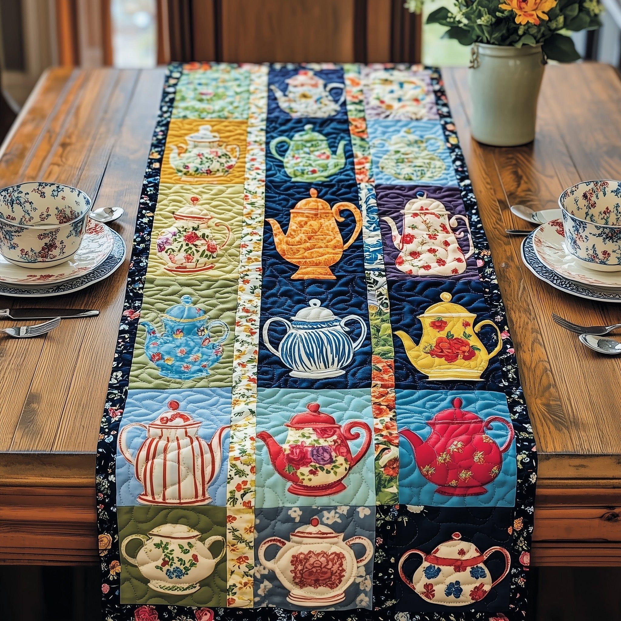 A Symphony of Teapots Quilted Table Runner GFTOHD6200