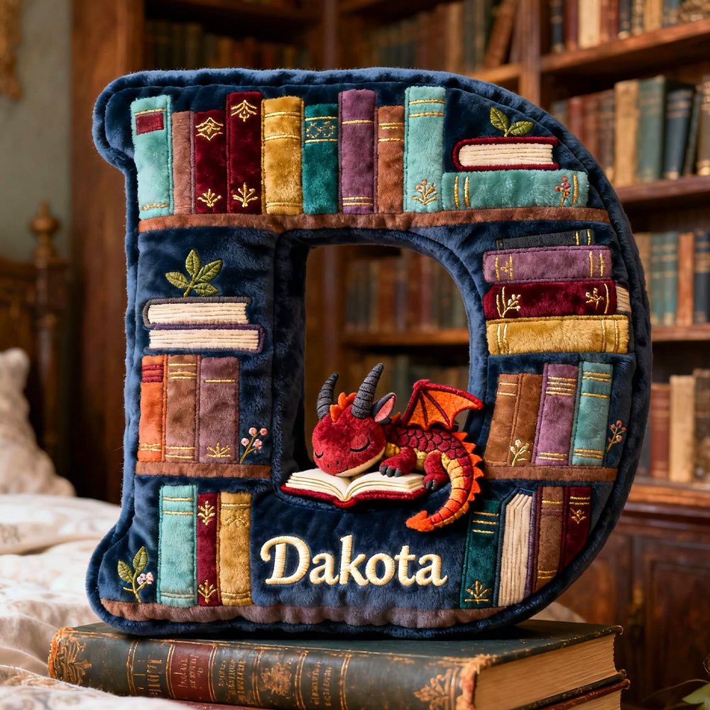 Personalized-Book Dragon Alphabet Initial Letters Pillow, Personalized Gifts For Book Lovers 05qhtn191125