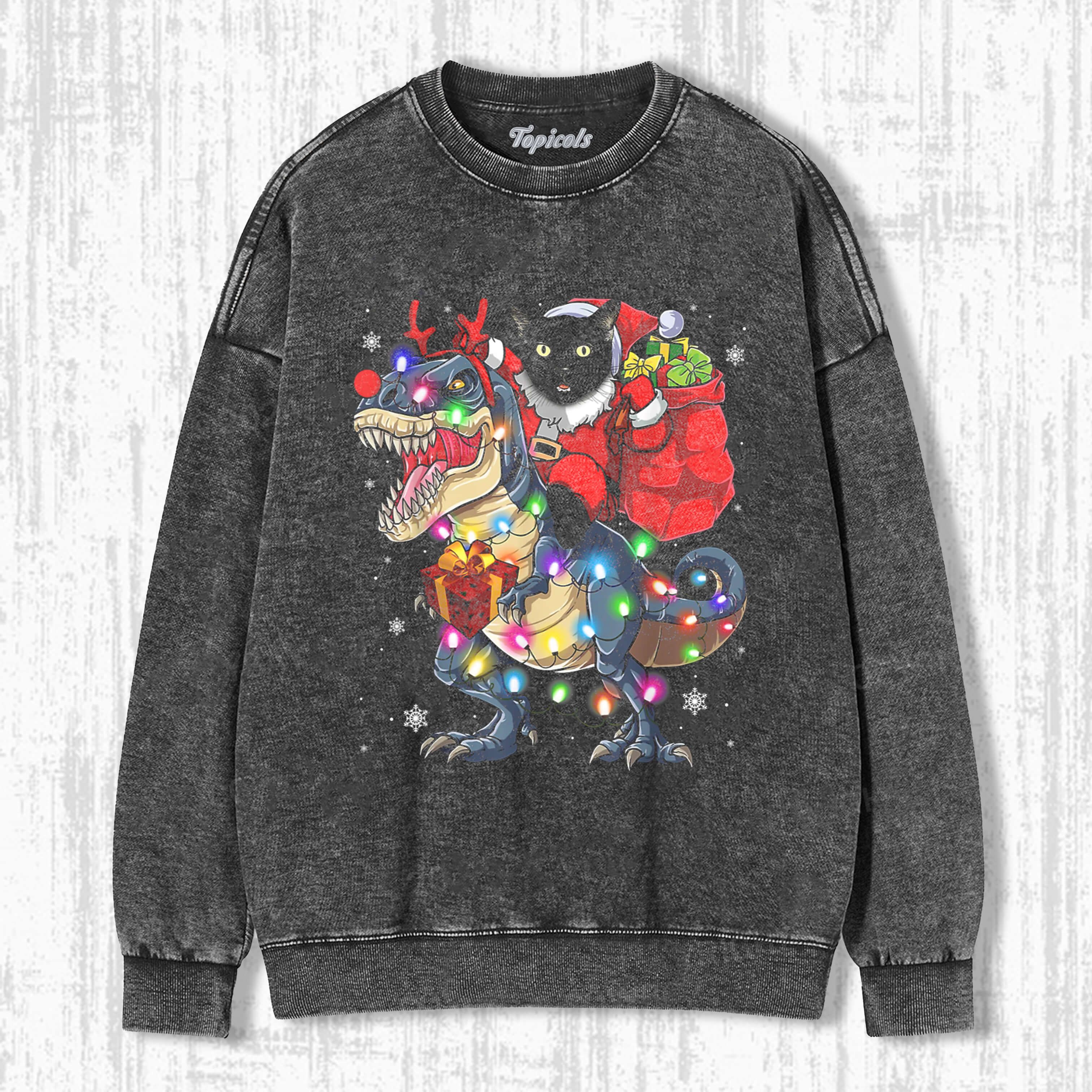 CAT RIDING A DINOSAUR T REX CHRISTMAS SHIRT