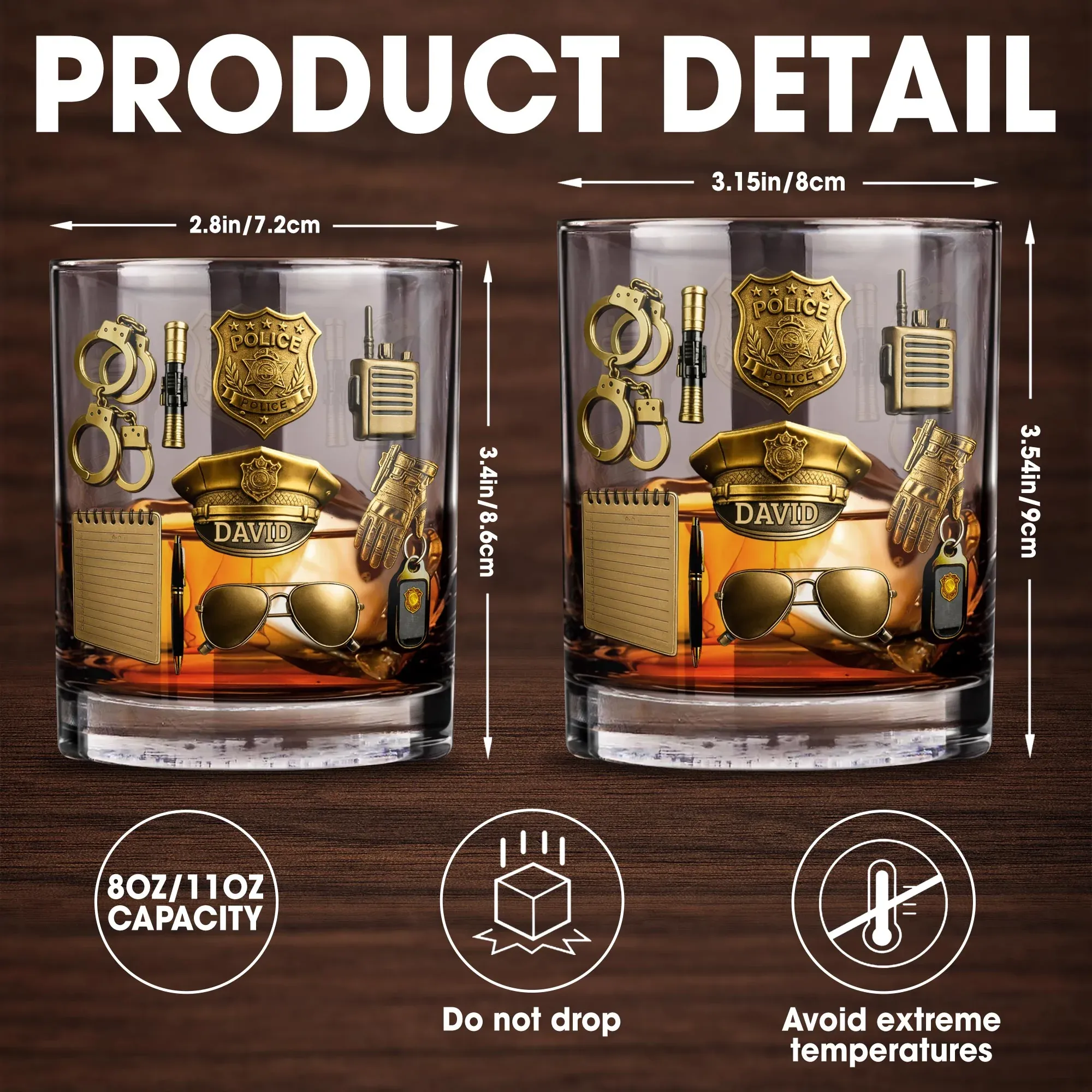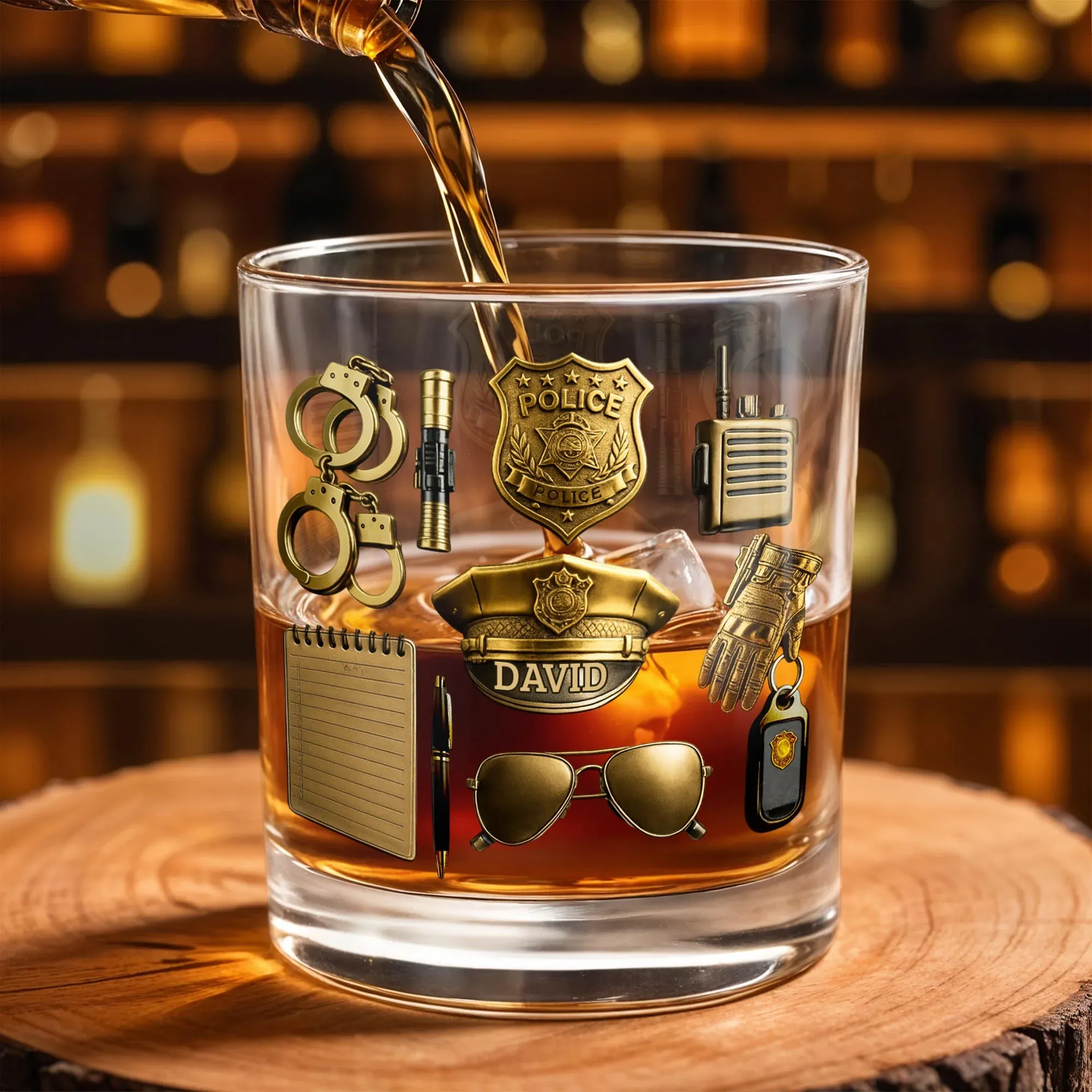 Personalized-Celebrate Your Service With Badge, Handcuffs, and Hat, Personalized Custom Whiskey Glass, Gift For Policemen
