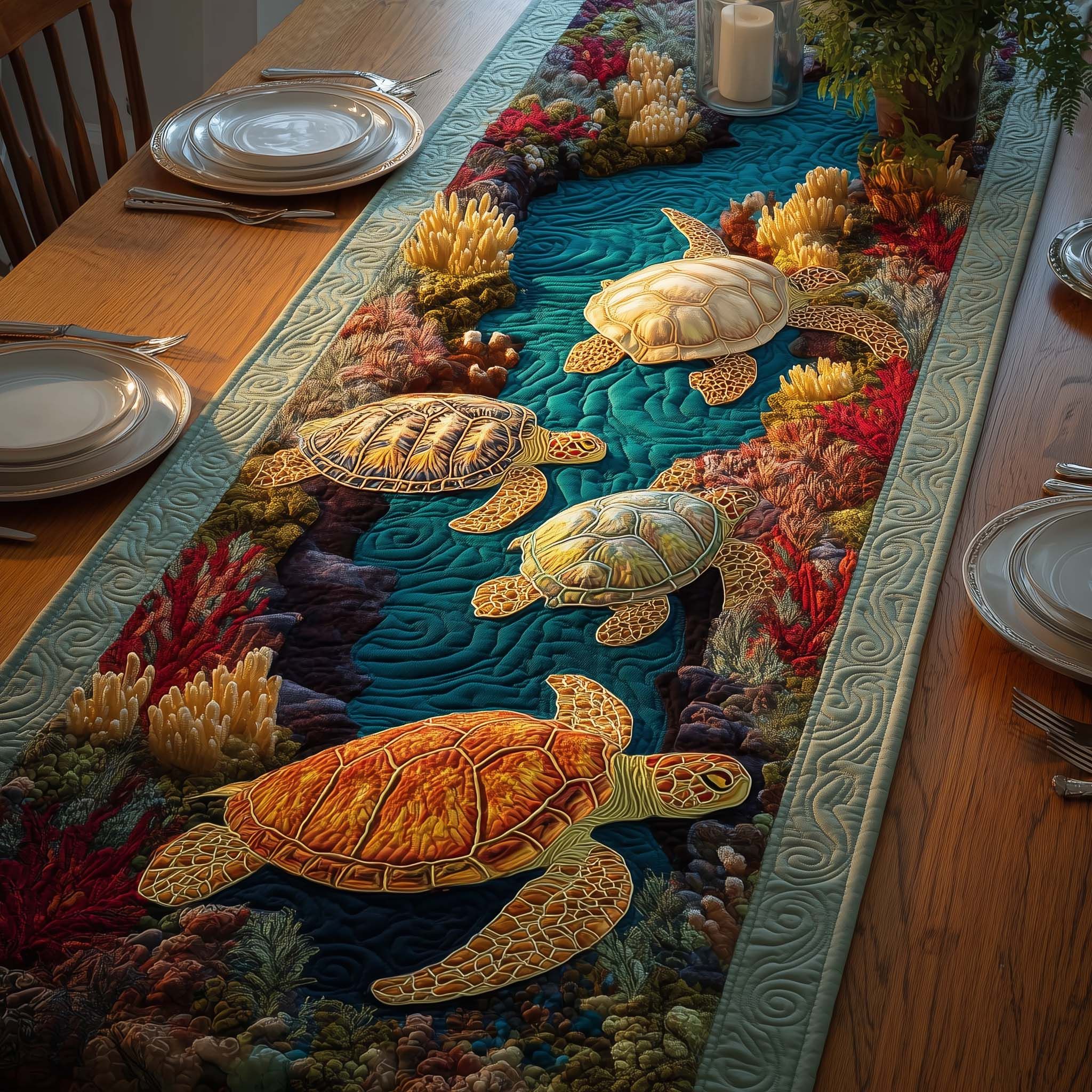 Coral Turtles Quilted Table Runner GFTOQM1512