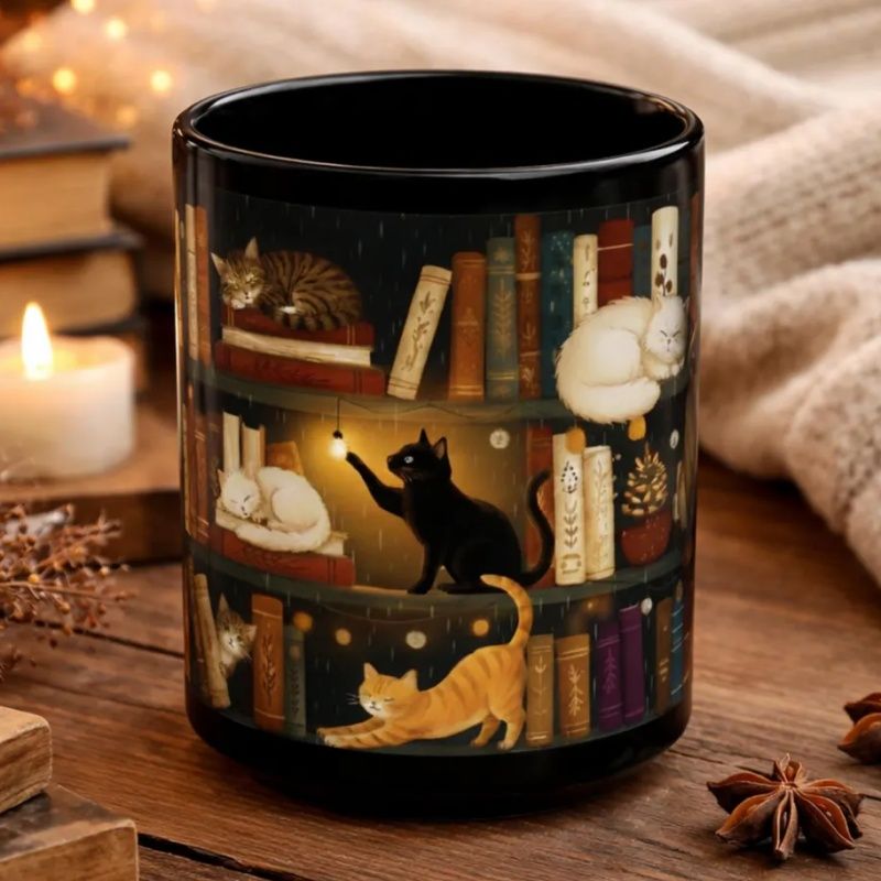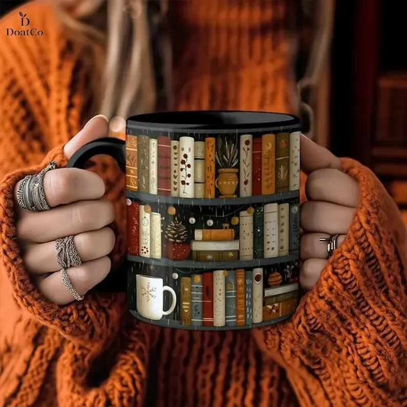 Personalized-Cozy Book Lover Mug, Bookshelf Coffee Cup, Reading Nook Ceramic Mug, Aesthetic Library Mug Gift for Readers
