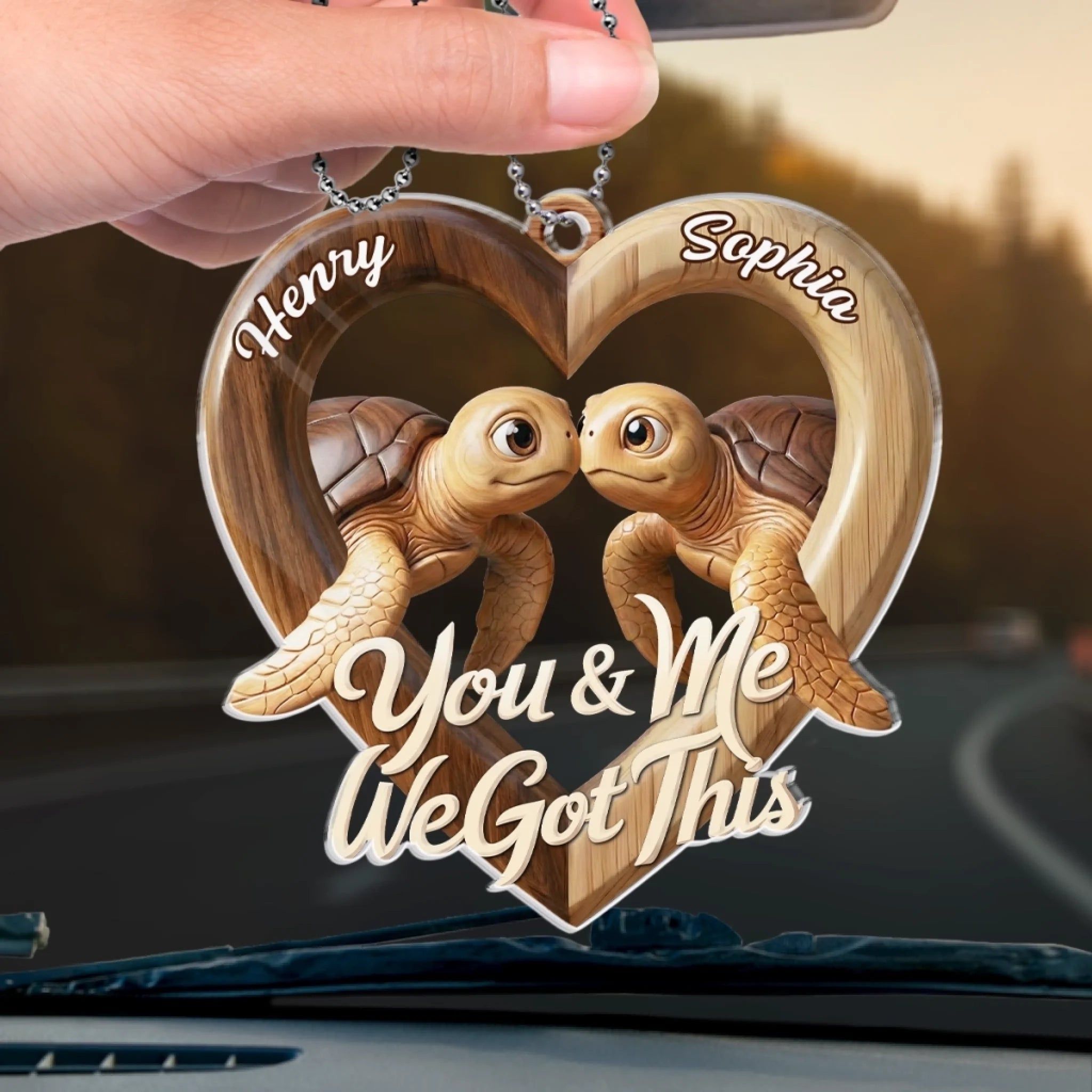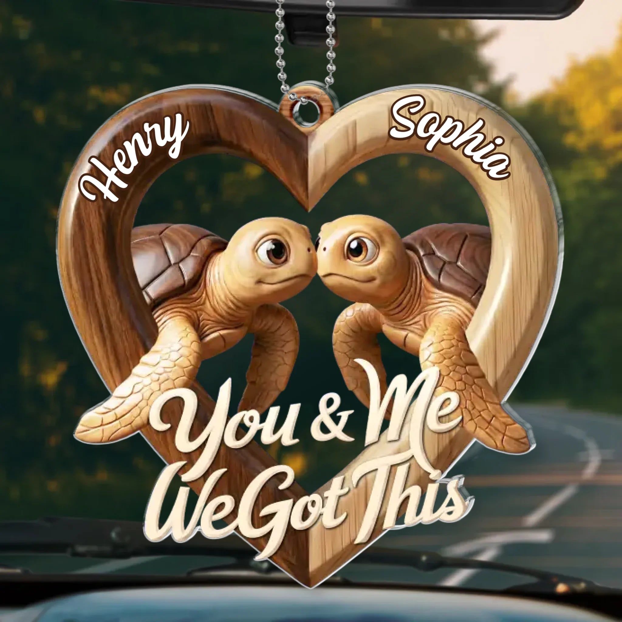 Personalized-Custom Acrylic Car Ornament - Personalized Anniversary Wedding Gifts For Husband And Wife, Him And Her - Two Hearts One Road