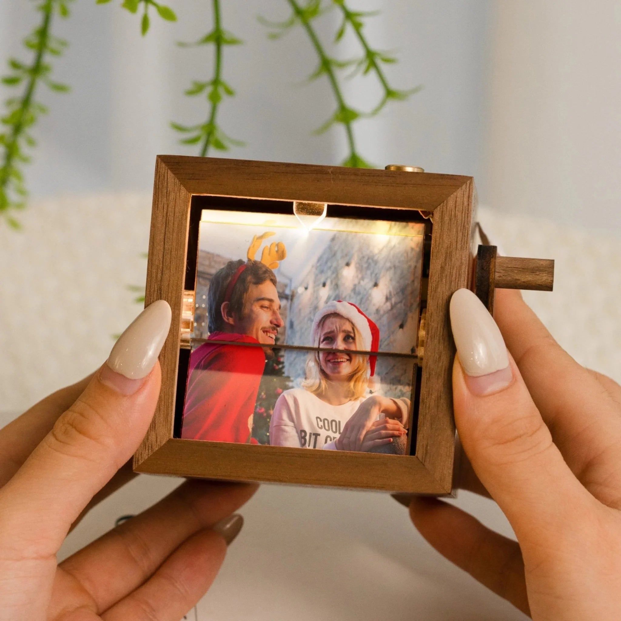 Personalized-Custom Crank Photo Box - Anniversary Gift For Couples, Husband, Wife