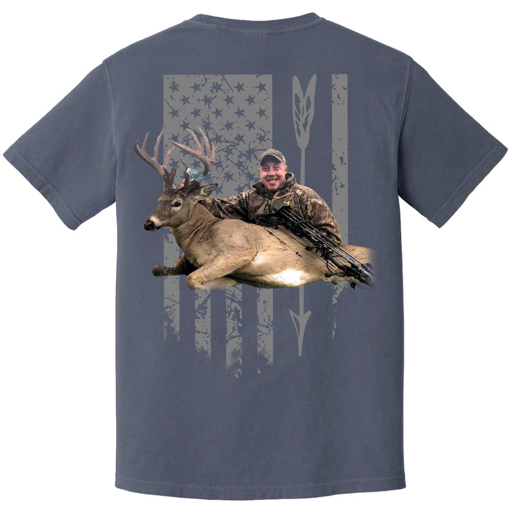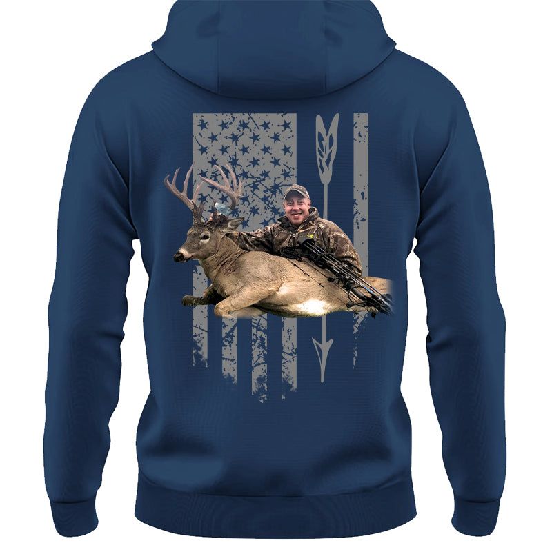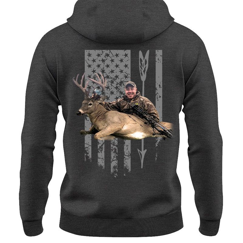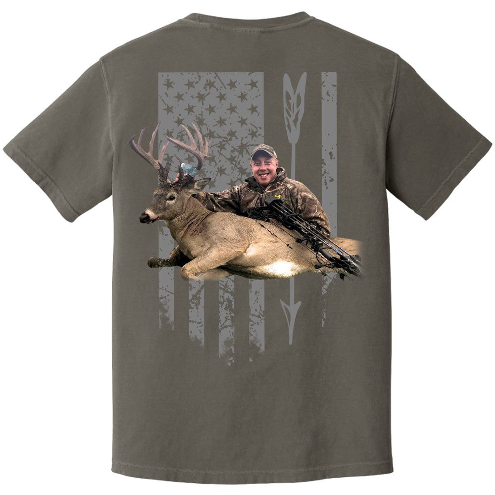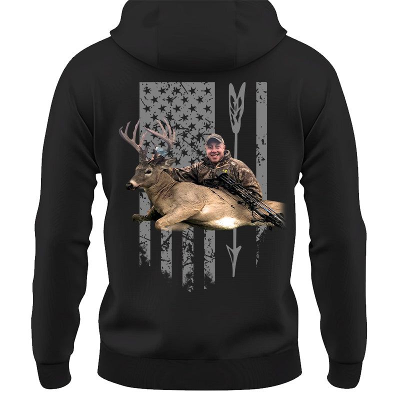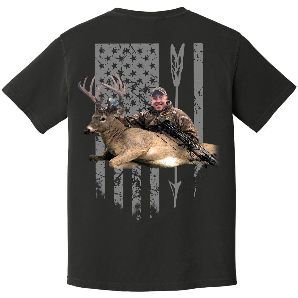 Custom Upload Photo Hunting Shirt with American Flag, Bow Hunting T-shirt, American Hunter Shirt, Hunting Gear for Men and Women, Father's Day Hunting Gift