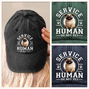 Personalized-Custom Vintage Washed Denim Baseball Cap - Custom Vintage Washed Denim Baseball Cap - Personalized Birthday Gifts For Dog Cat Lovers, Dog Dad And Mom, Cat Owners - Service Human, Do Not Pet