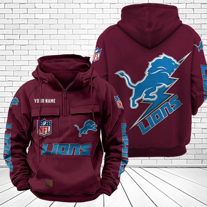 Detroit Lions Unisex Rugby Team Graphic Streetwear Vintage Plush Hoodie