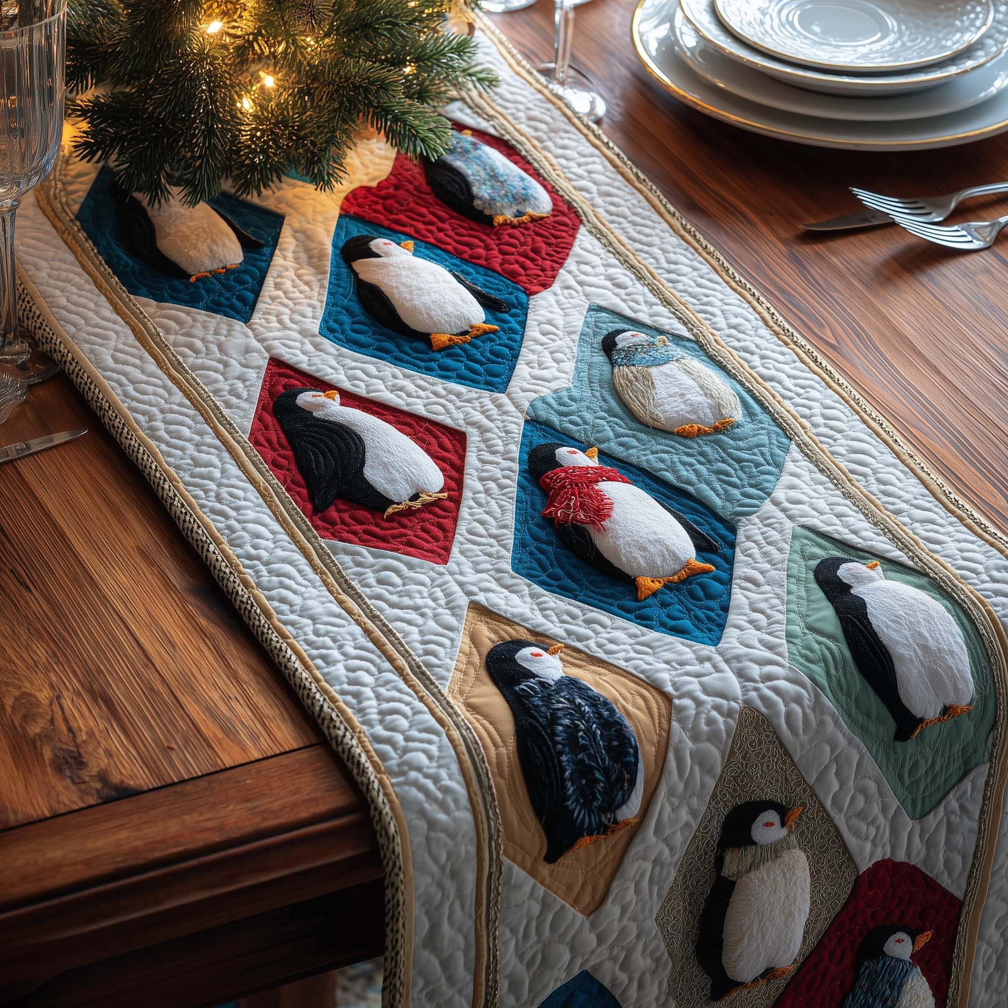 Diamond Penguins Quilted Table Runner GFTOQM1181
