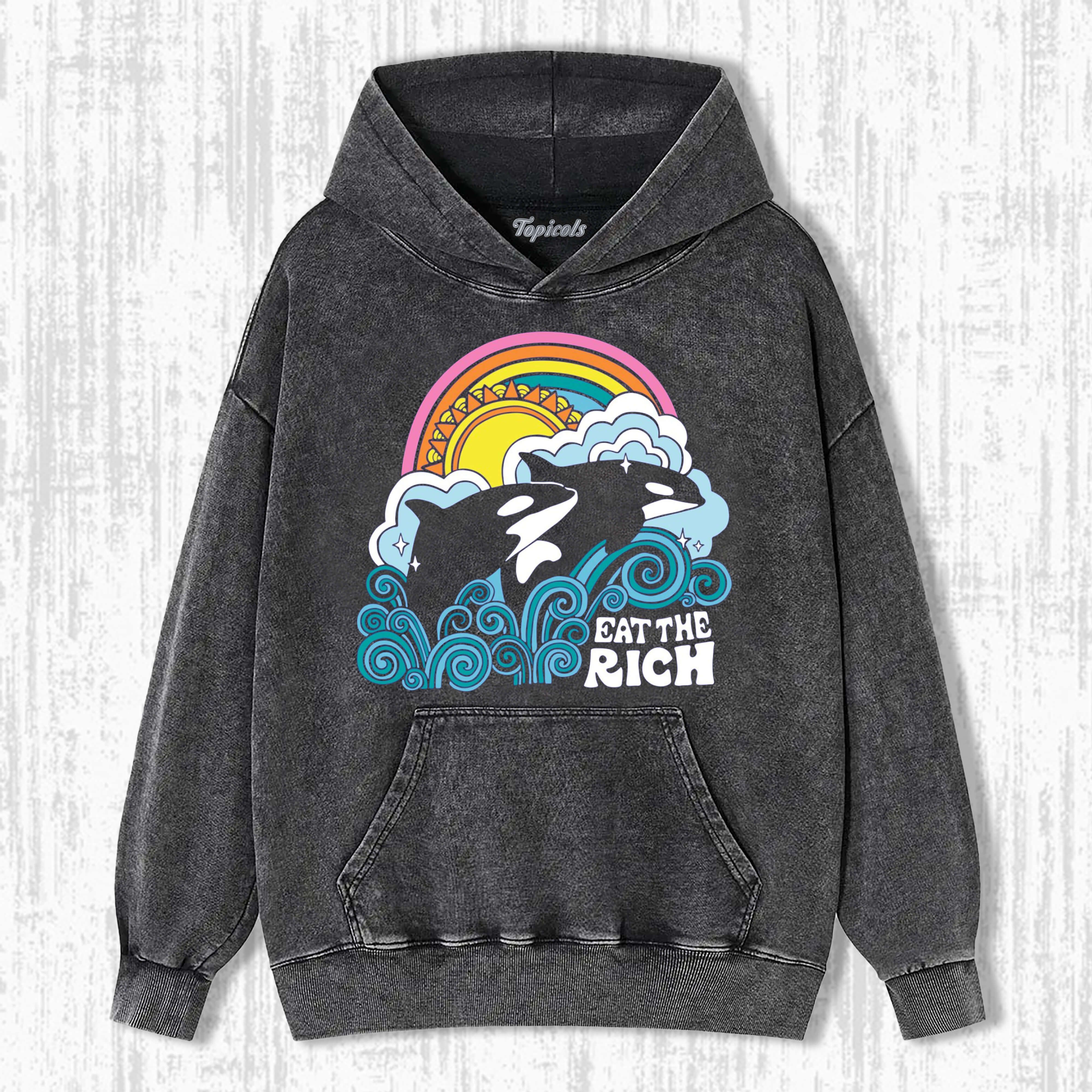 EAT THE RICH ORCA WHALES T-SHIRT
