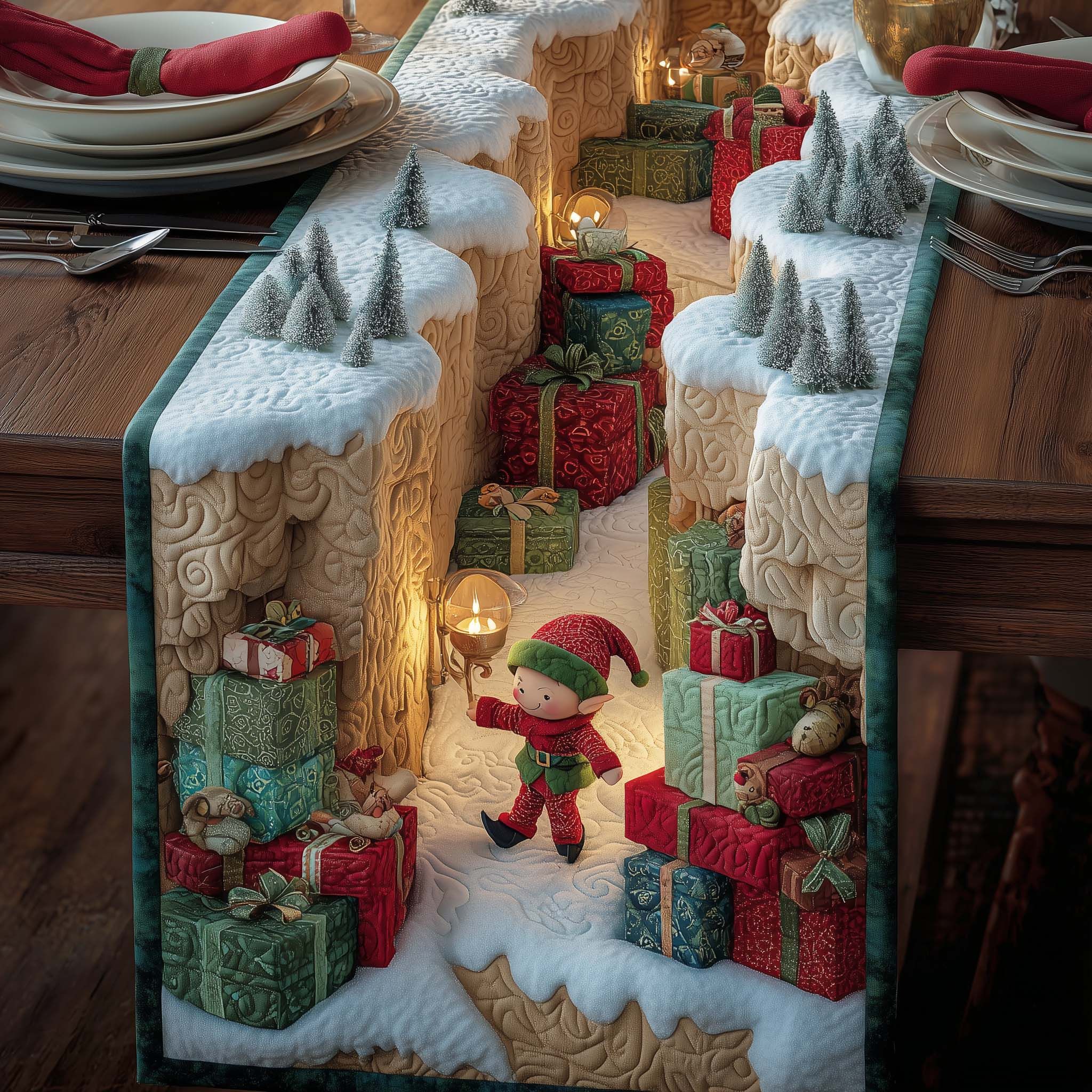 Elf Crafting Quilted Table Runner GFTOYC2428