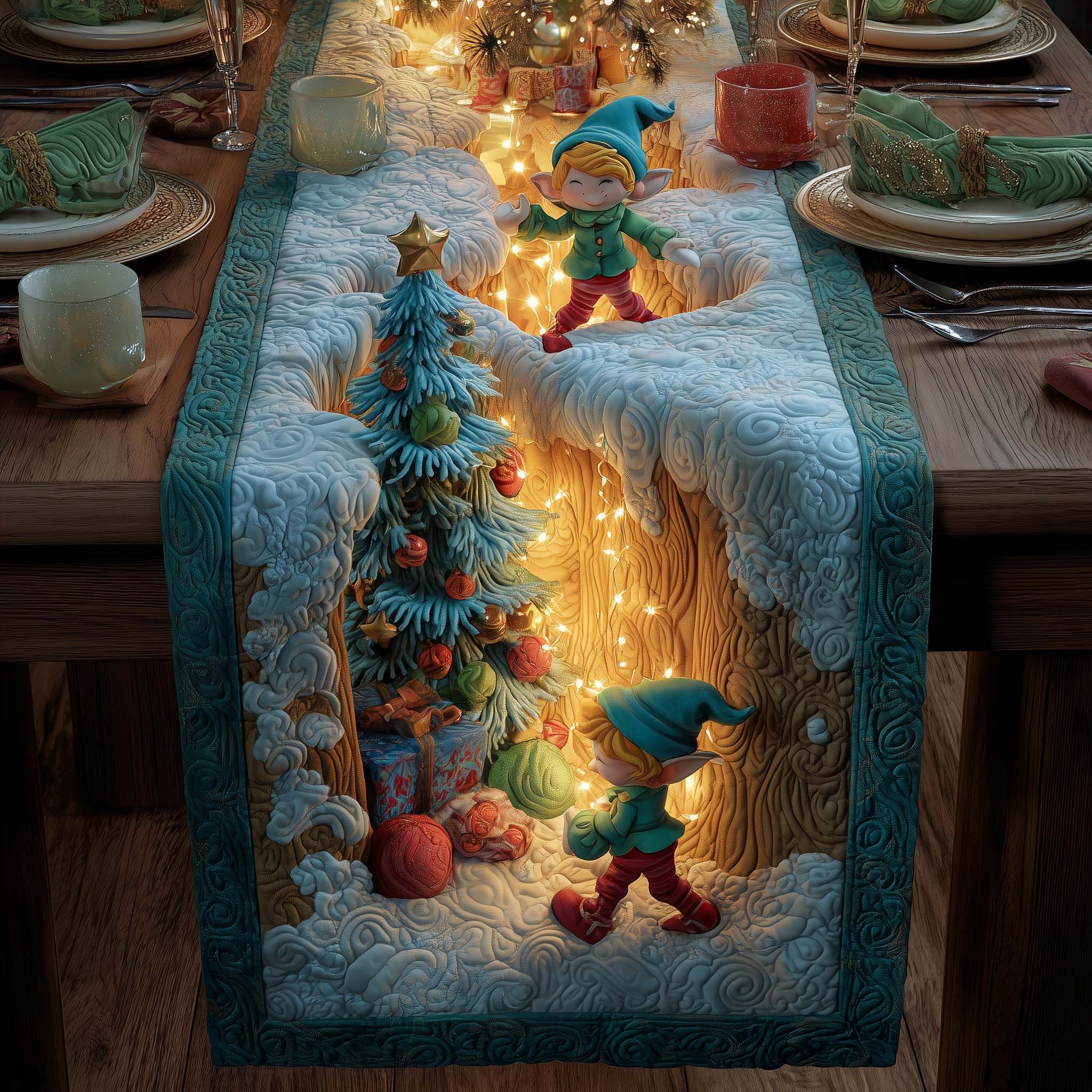 Elf Crafting Quilted Table Runner GFTOYC2429