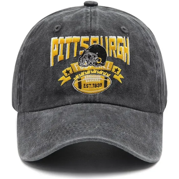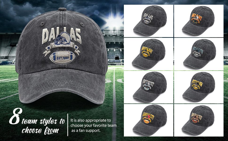 Personalized-Personalized-Embroidered City Vintage Washed Denim Football Hats for Men Women, Unisex Adjustable Cotton Fans Baseball Cap