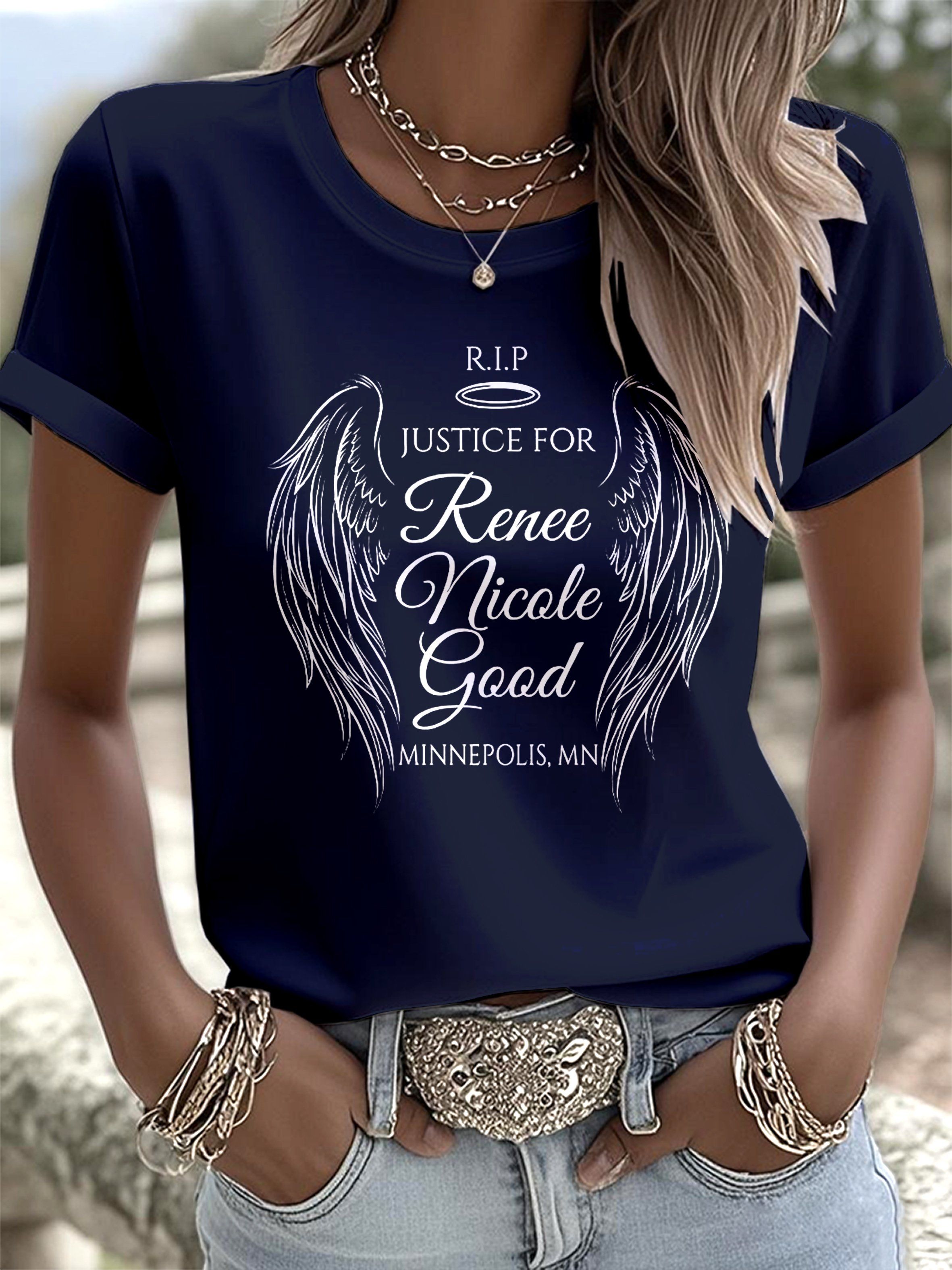 Women's Justice Light Round Neck Printed Casual T-shirt