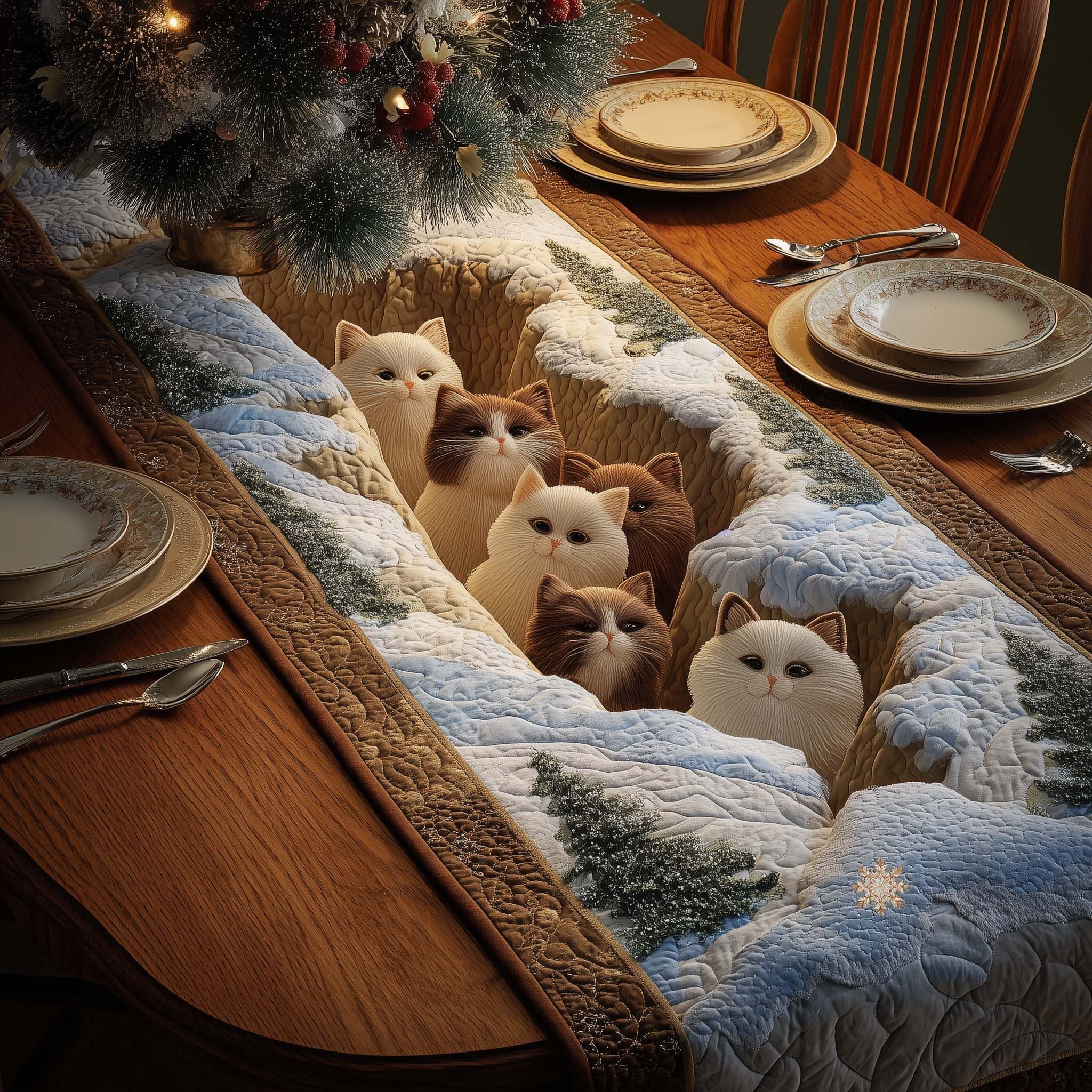 Feline Grace Quilted Table Runner GFTOYC2630