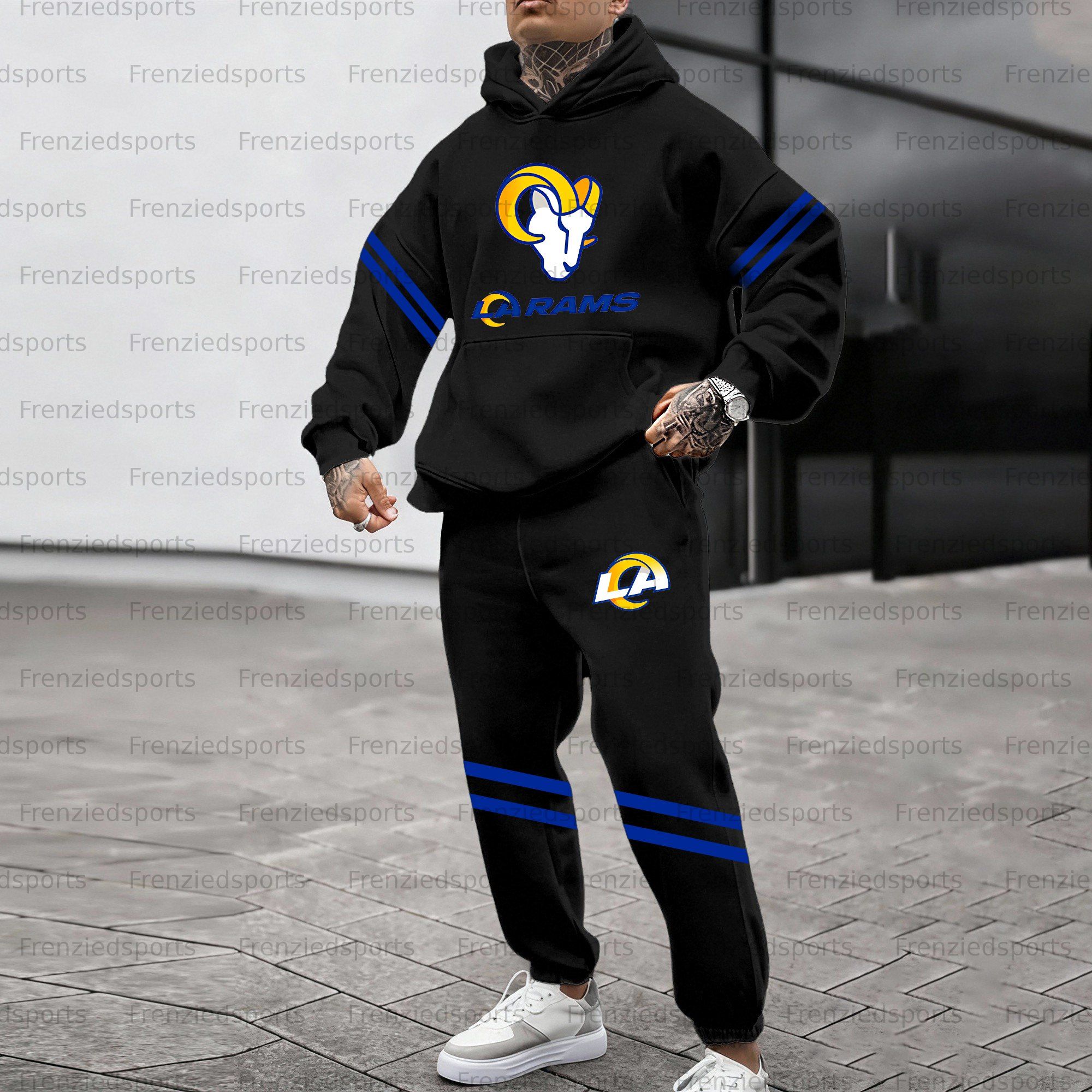 (Fleece-Lined Hoodie) ”Los Angeles Rams“3D Printed Pullover Hoodie And Sweatpant 2pcs Tracksuits
