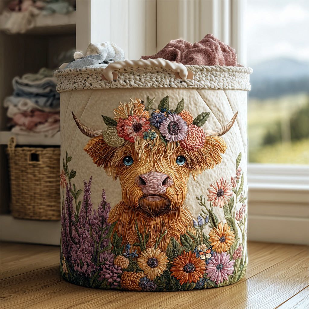 Floral Cow Quilted Laundry Basket NCU0TH2940