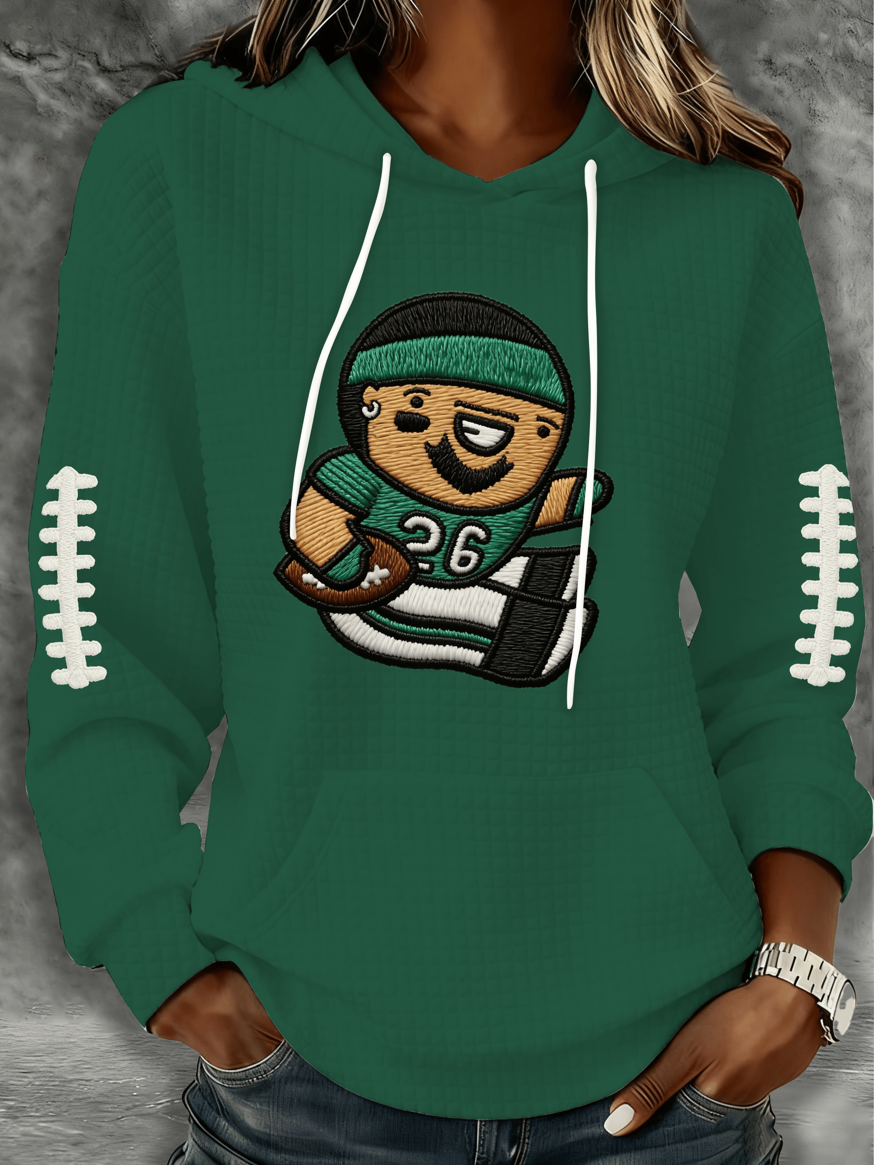 Match day football-printed women's round-neck hoodie