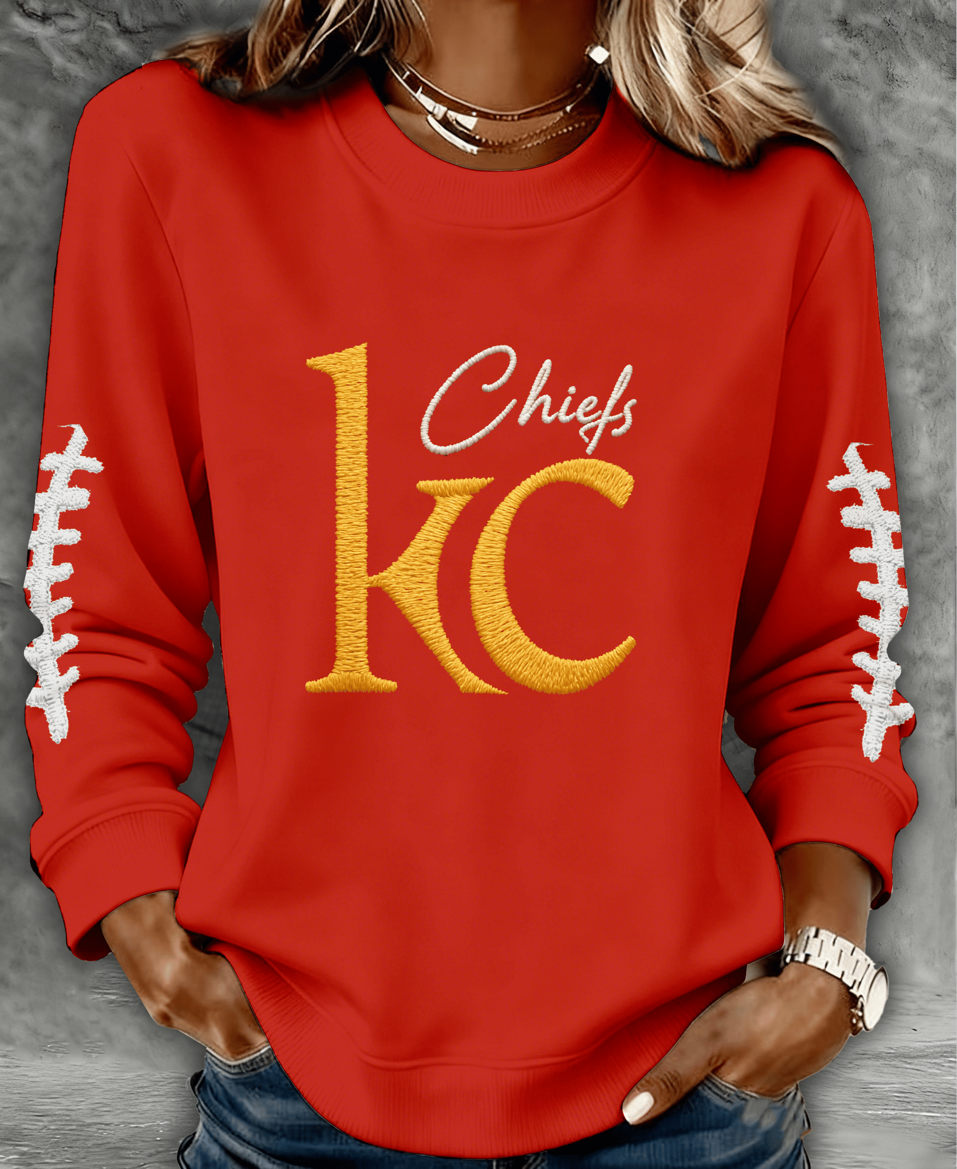 Women's Football Print Round Neck Sweatshirt