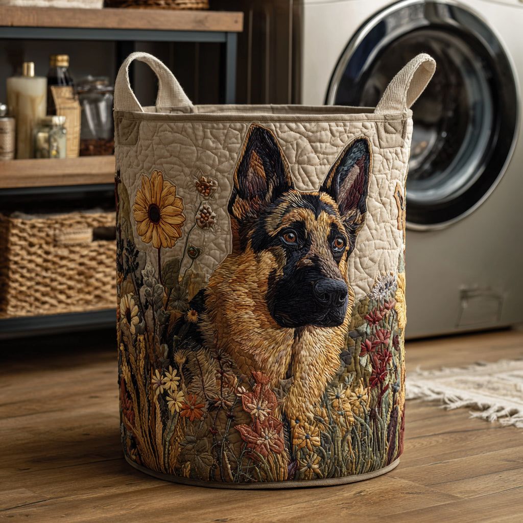 German Shepherd Meadow Quilted Laundry Basket NCU0HNH062