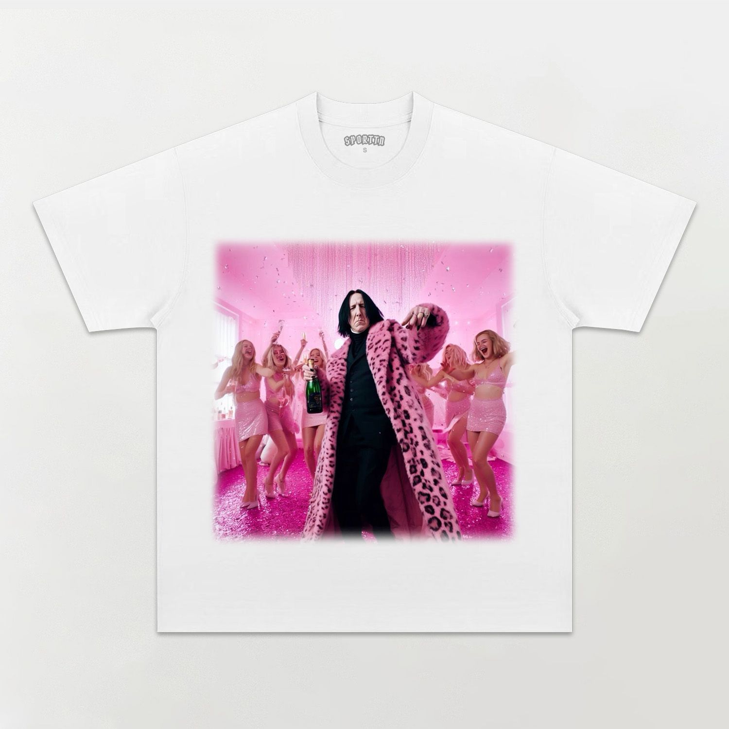 PINK CHRISTMAS TREE AND BLACK LEATHER BARBIECORE T-SHIRT