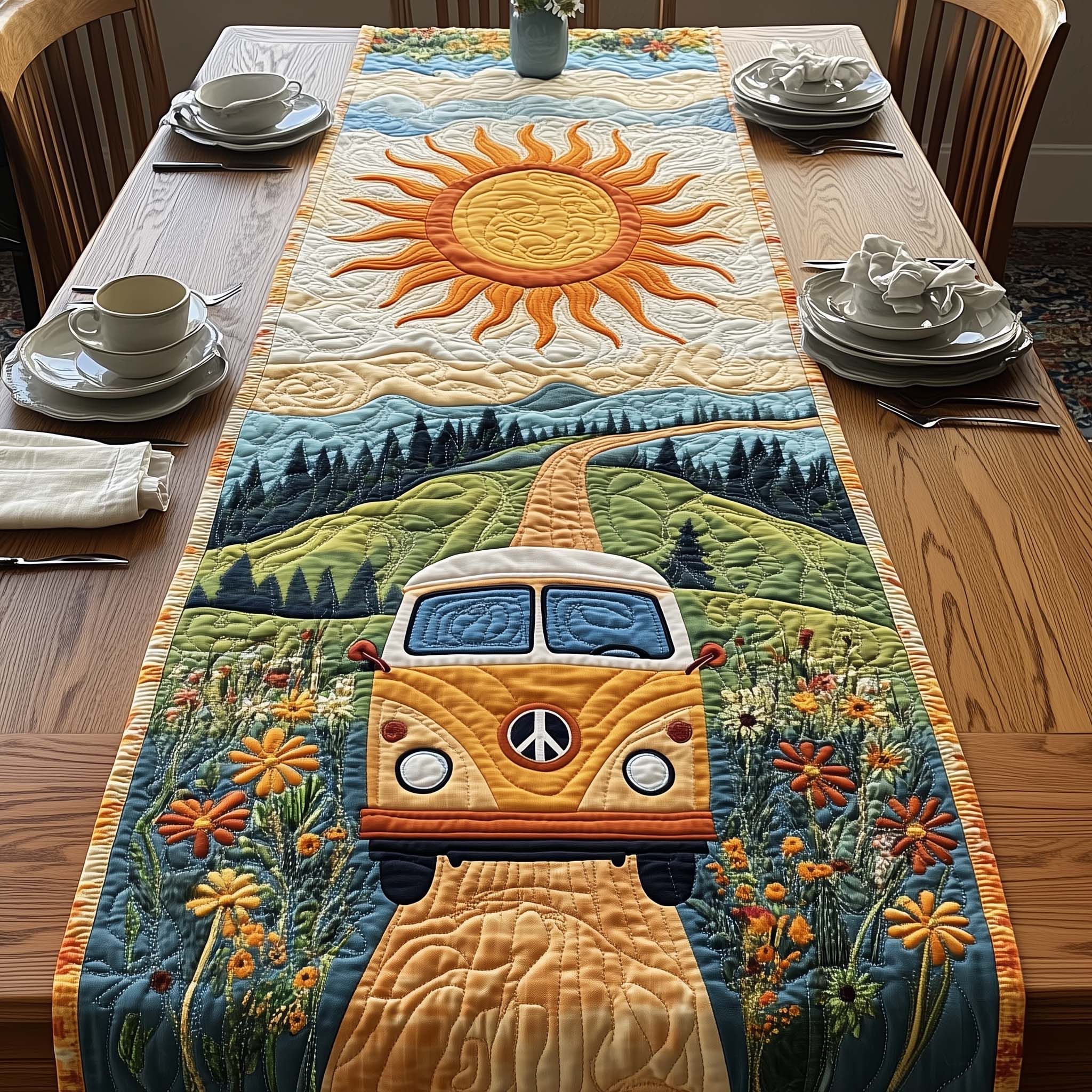 Hippie Van Quilted Table Runner GFTOQA810