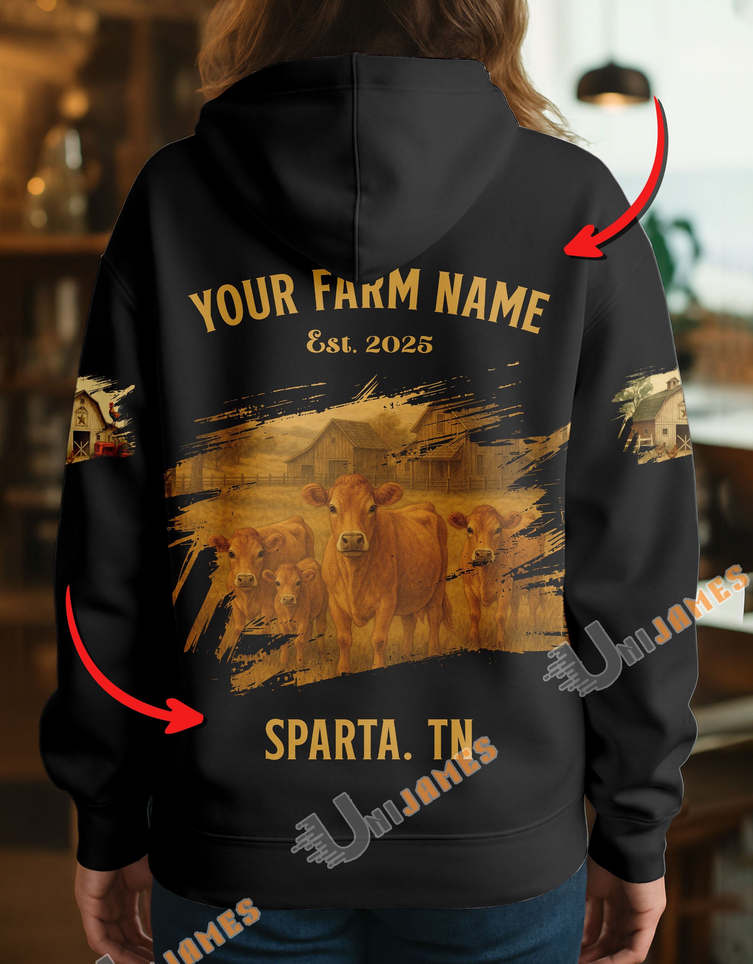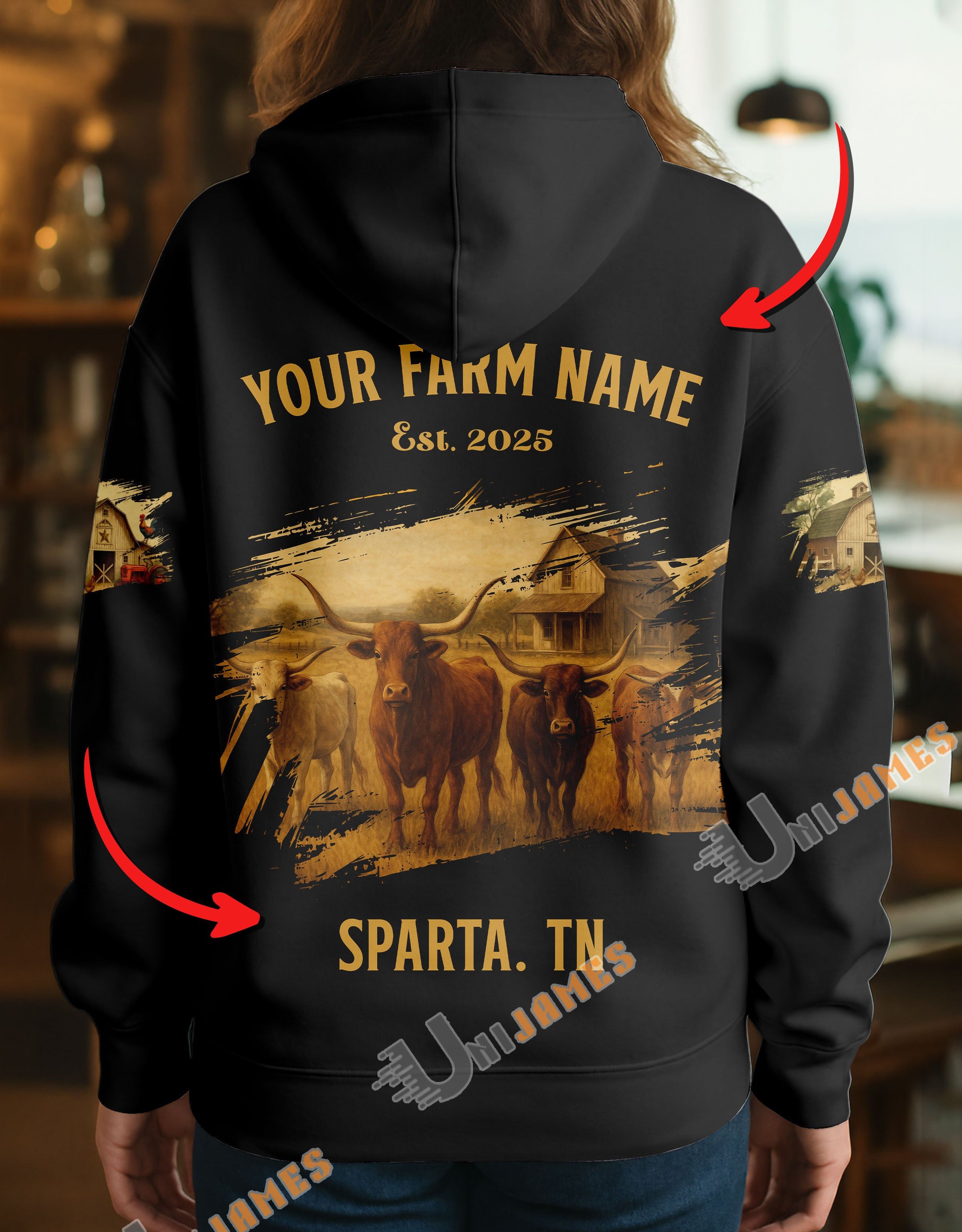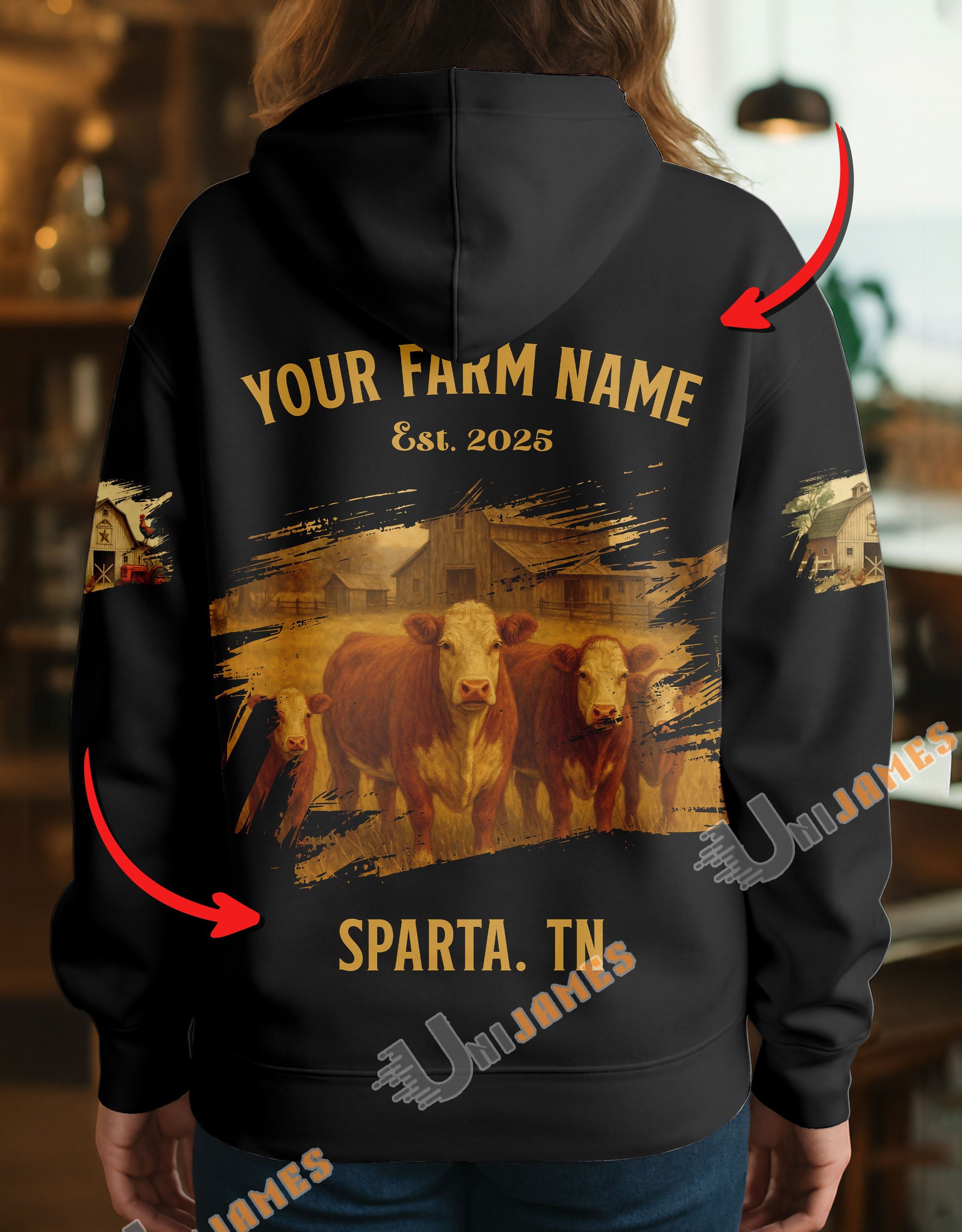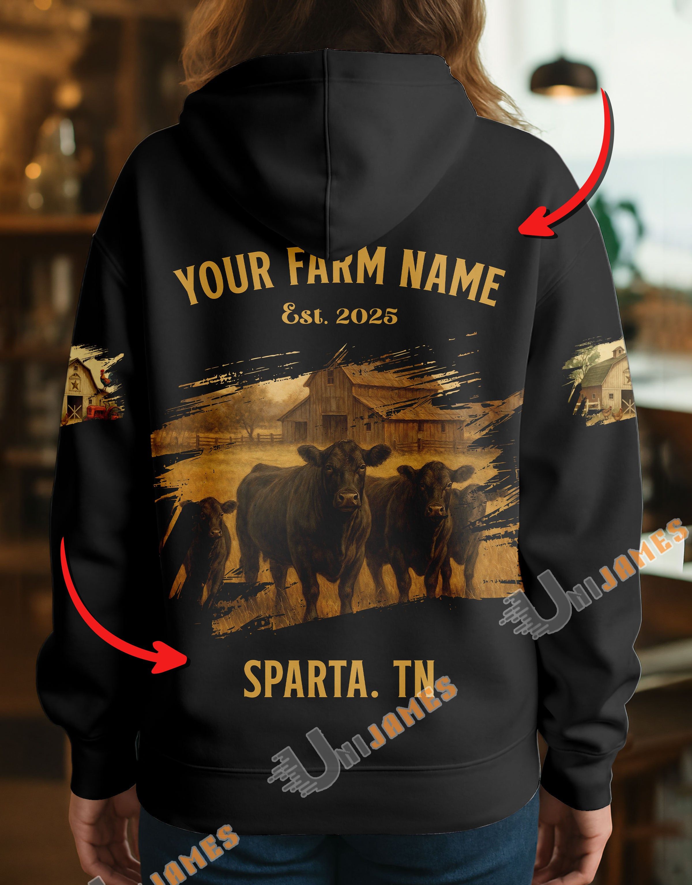 Uni Personalized Name & Farm Name Black Cattle Hoodie