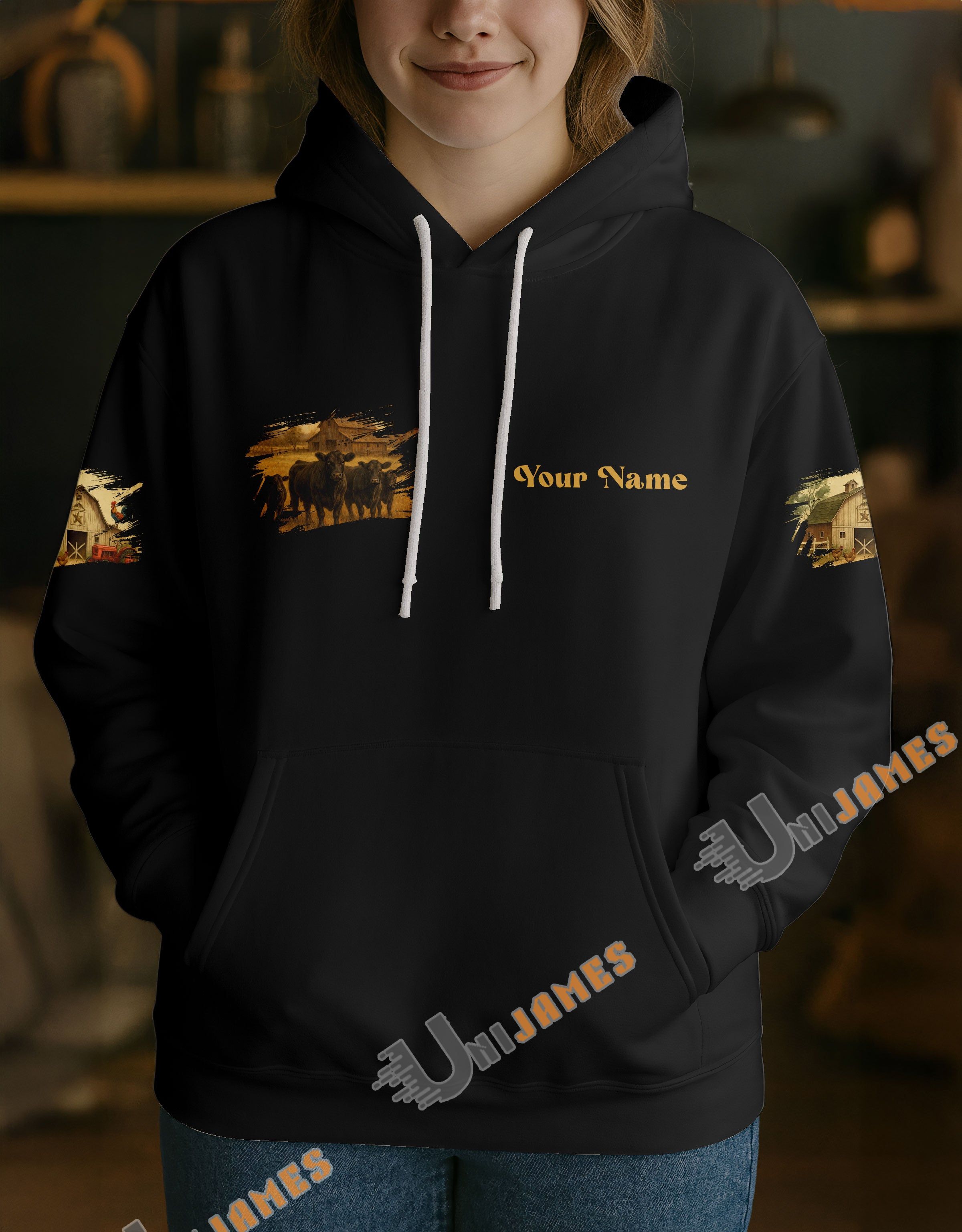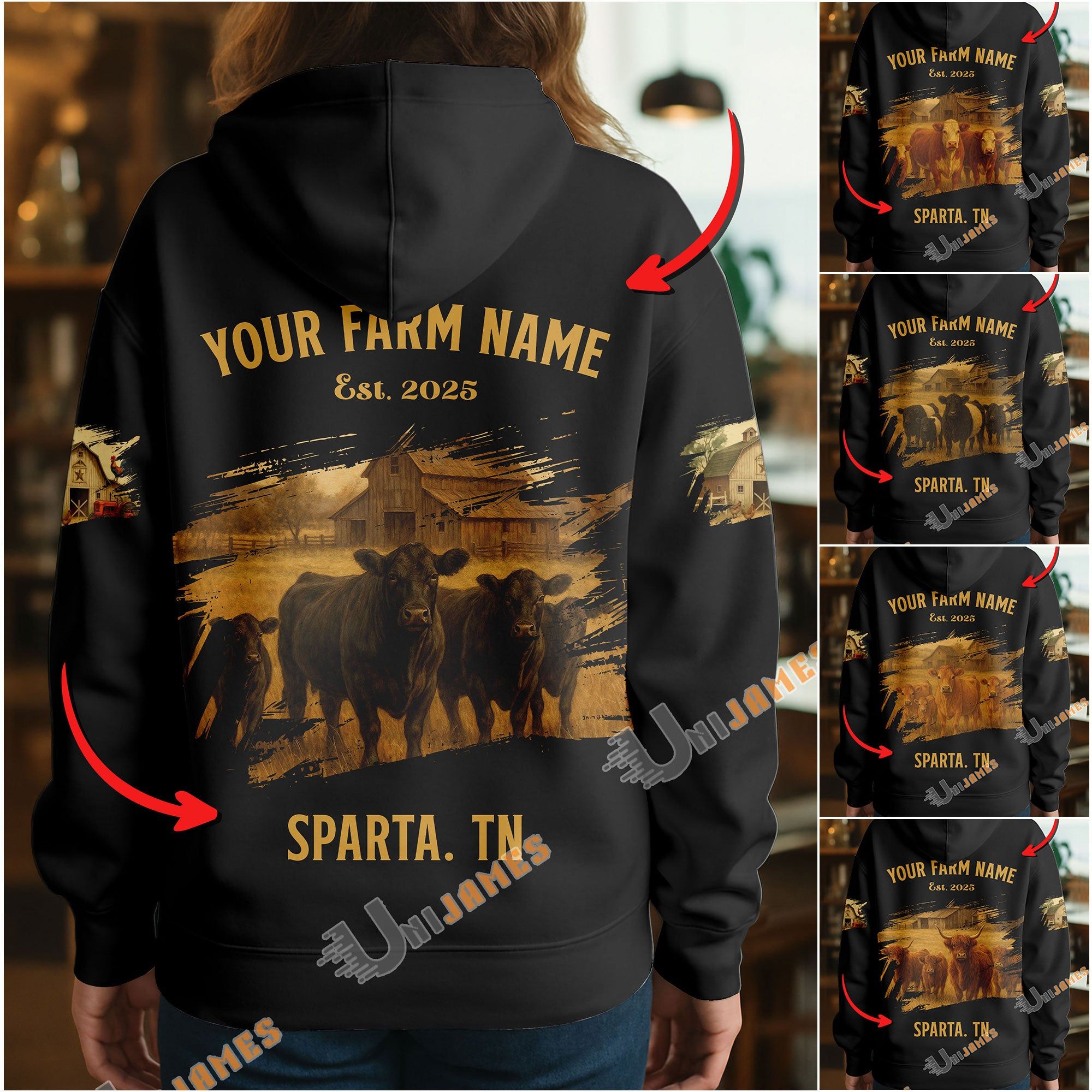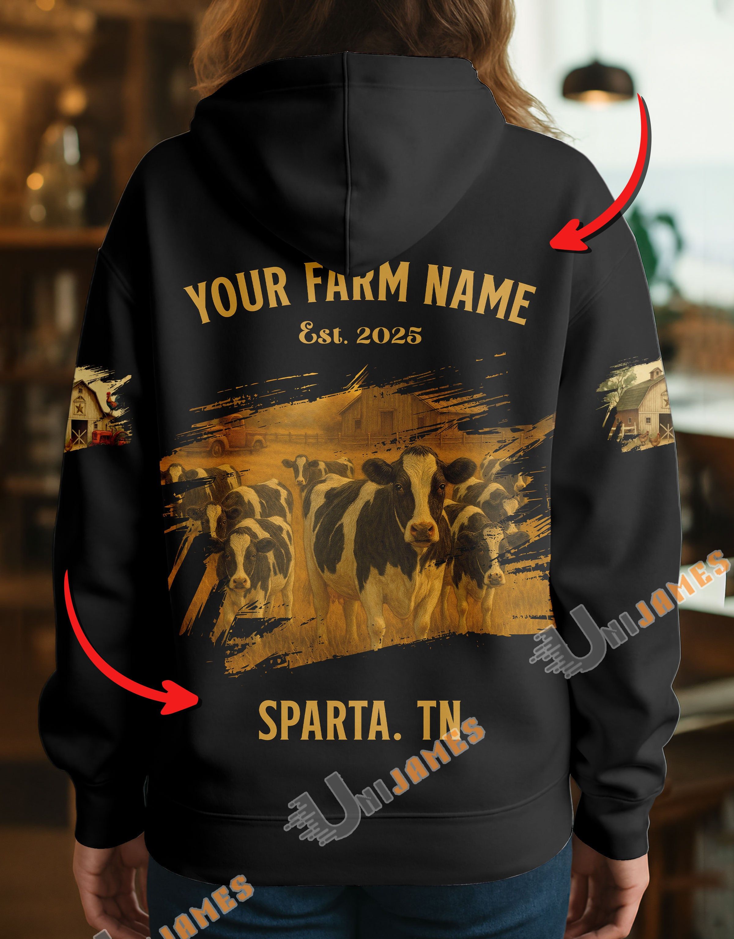 Uni Personalized Name & Farm Name Black Cattle Hoodie