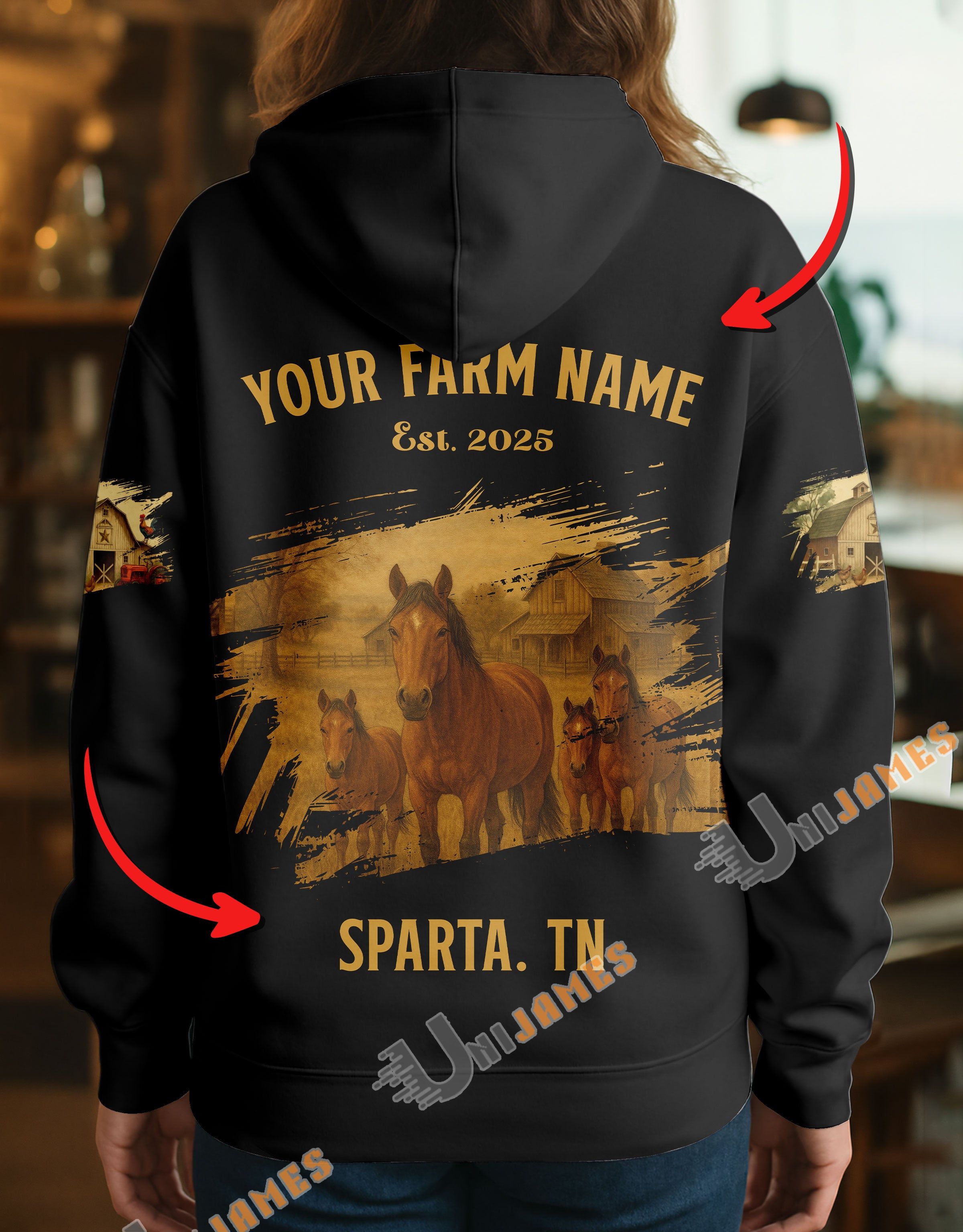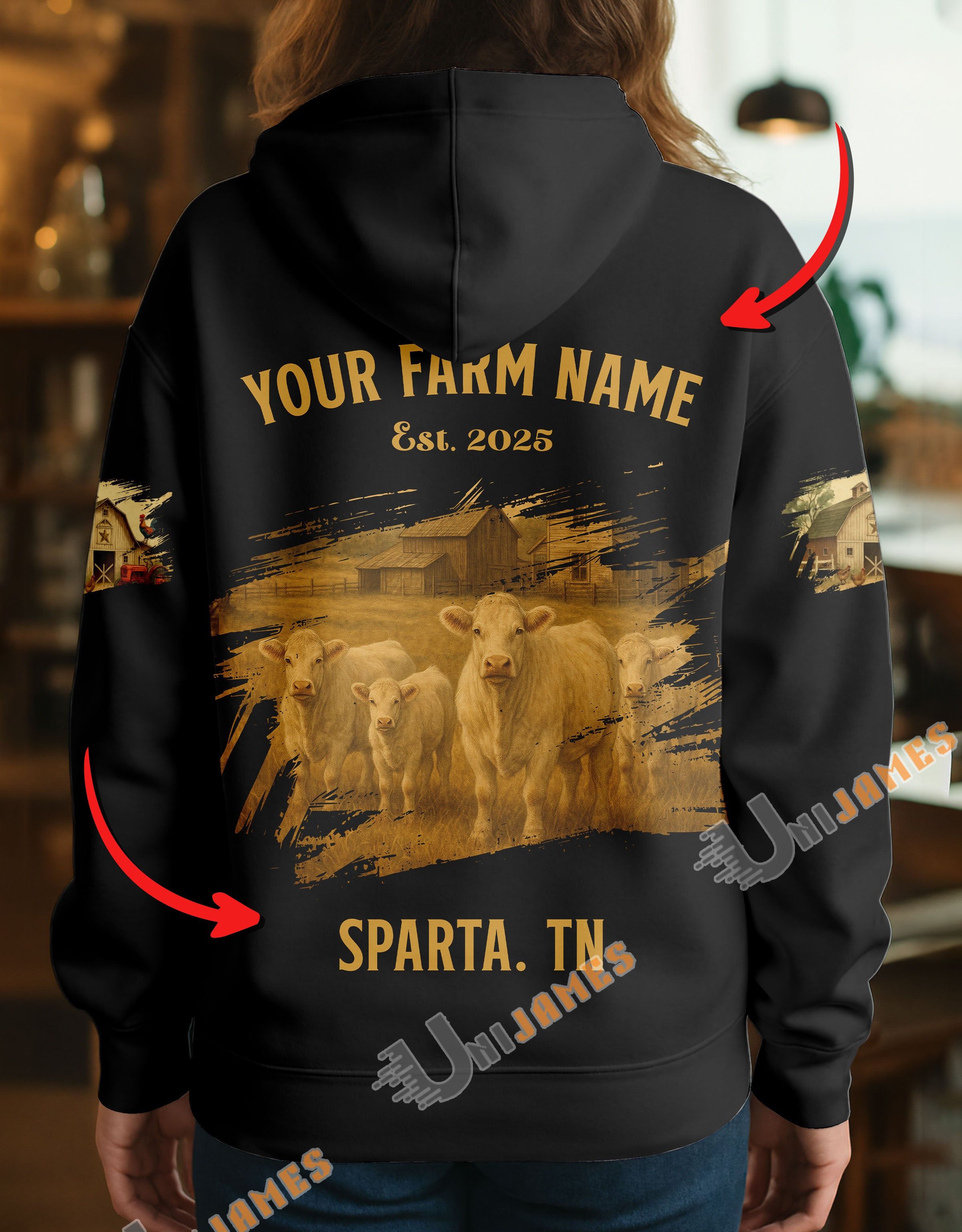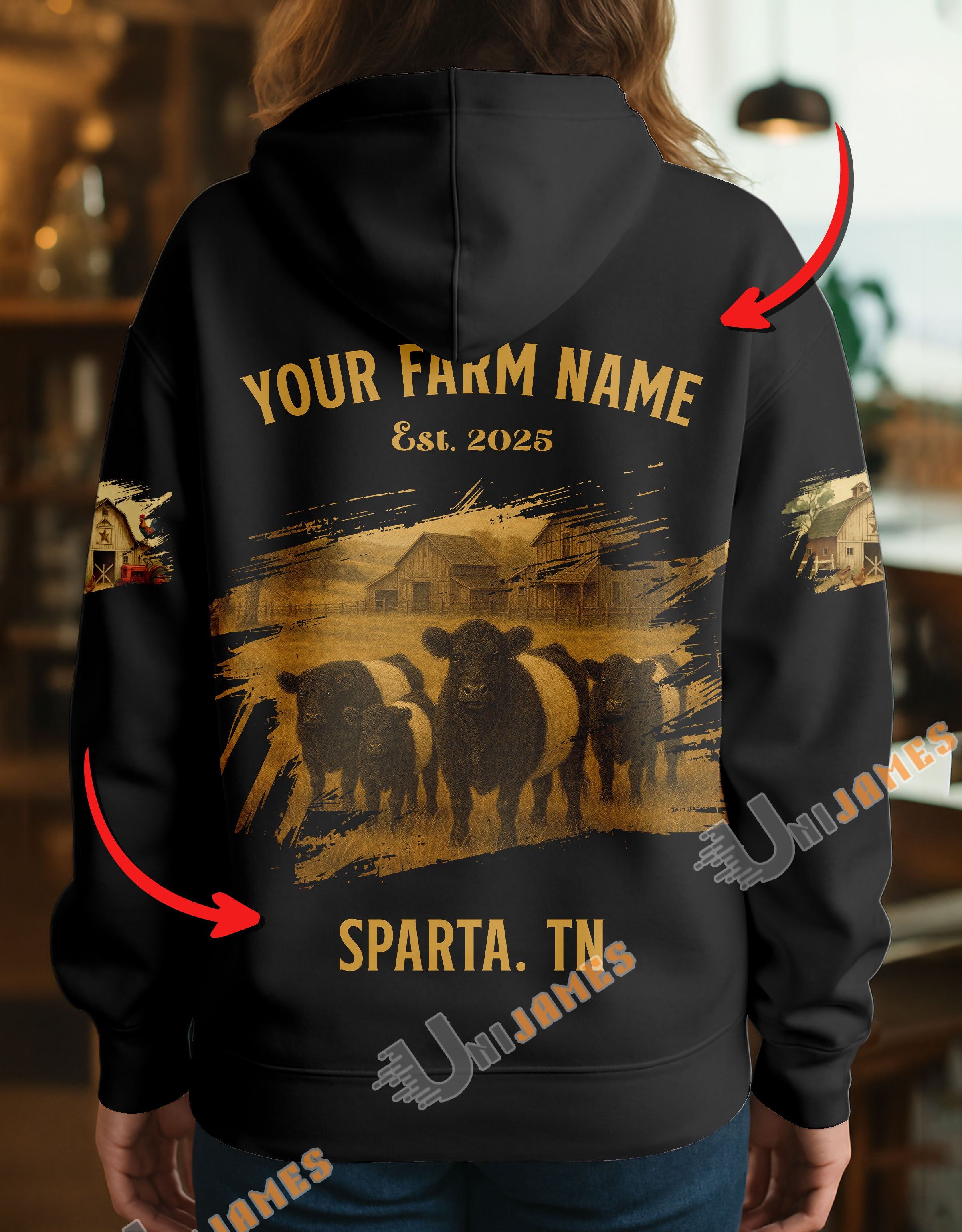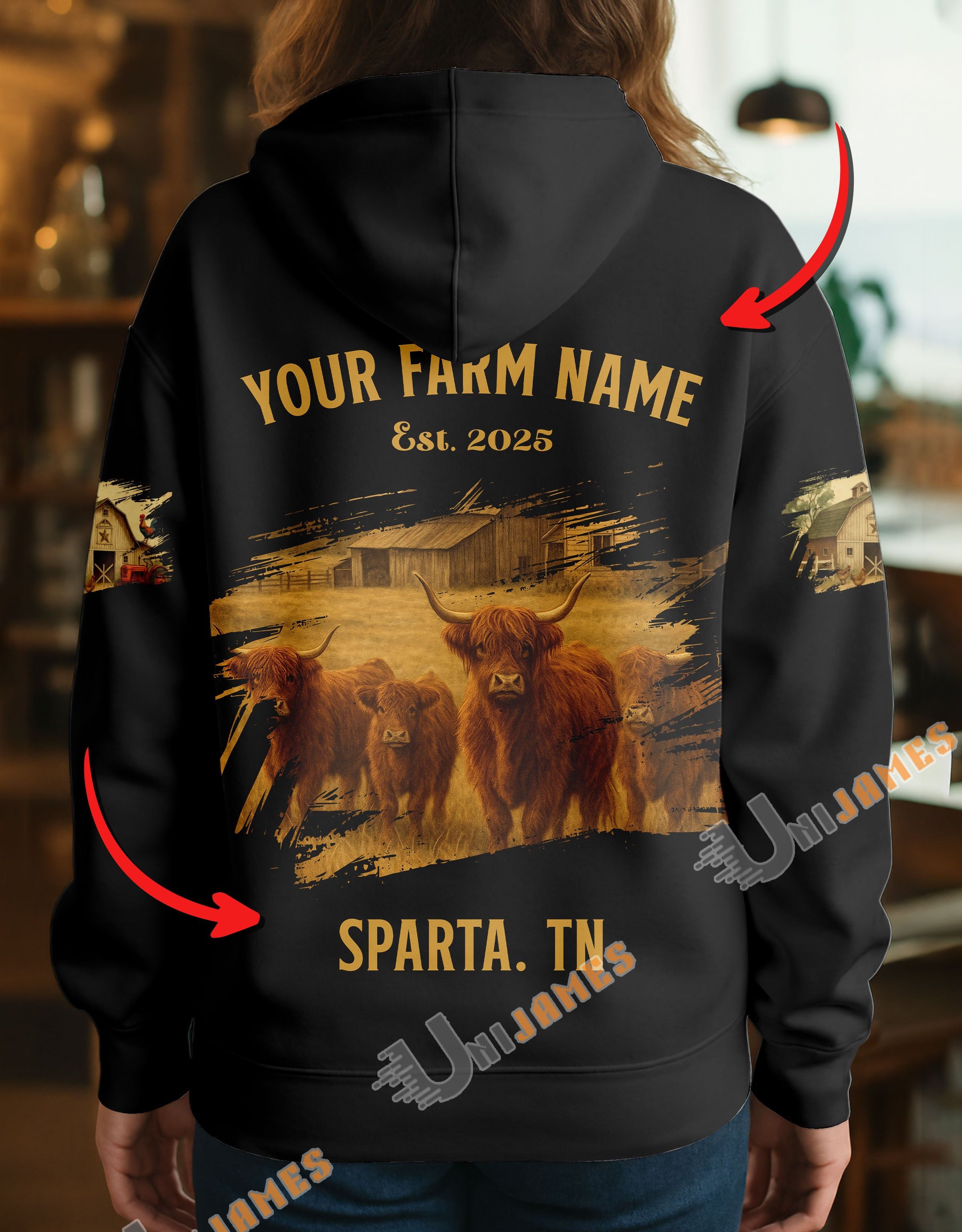 Uni Personalized Name & Farm Name Black Cattle Hoodie