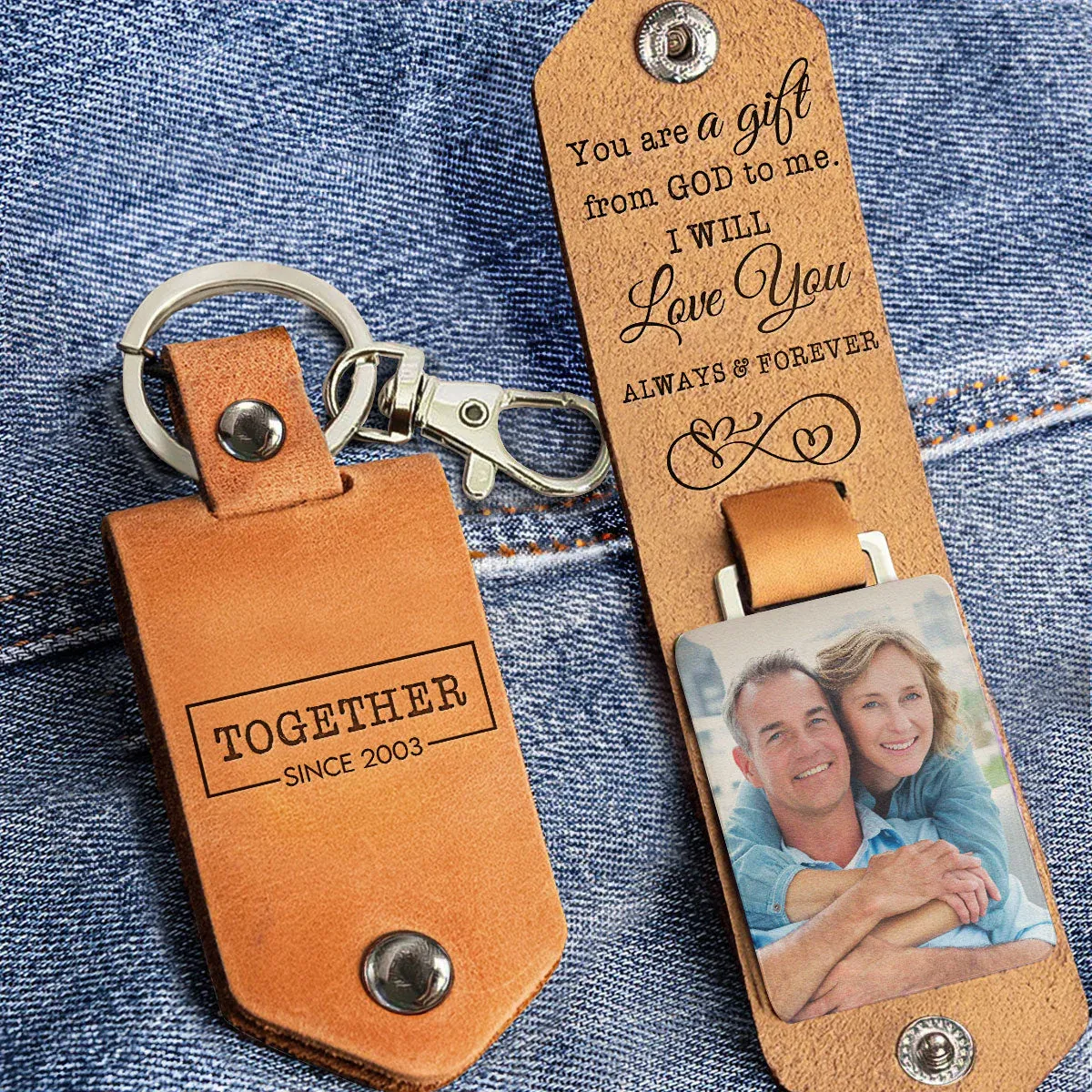 Personalized-I Love You Always And Forever - Personalized Leather Photo Keychain