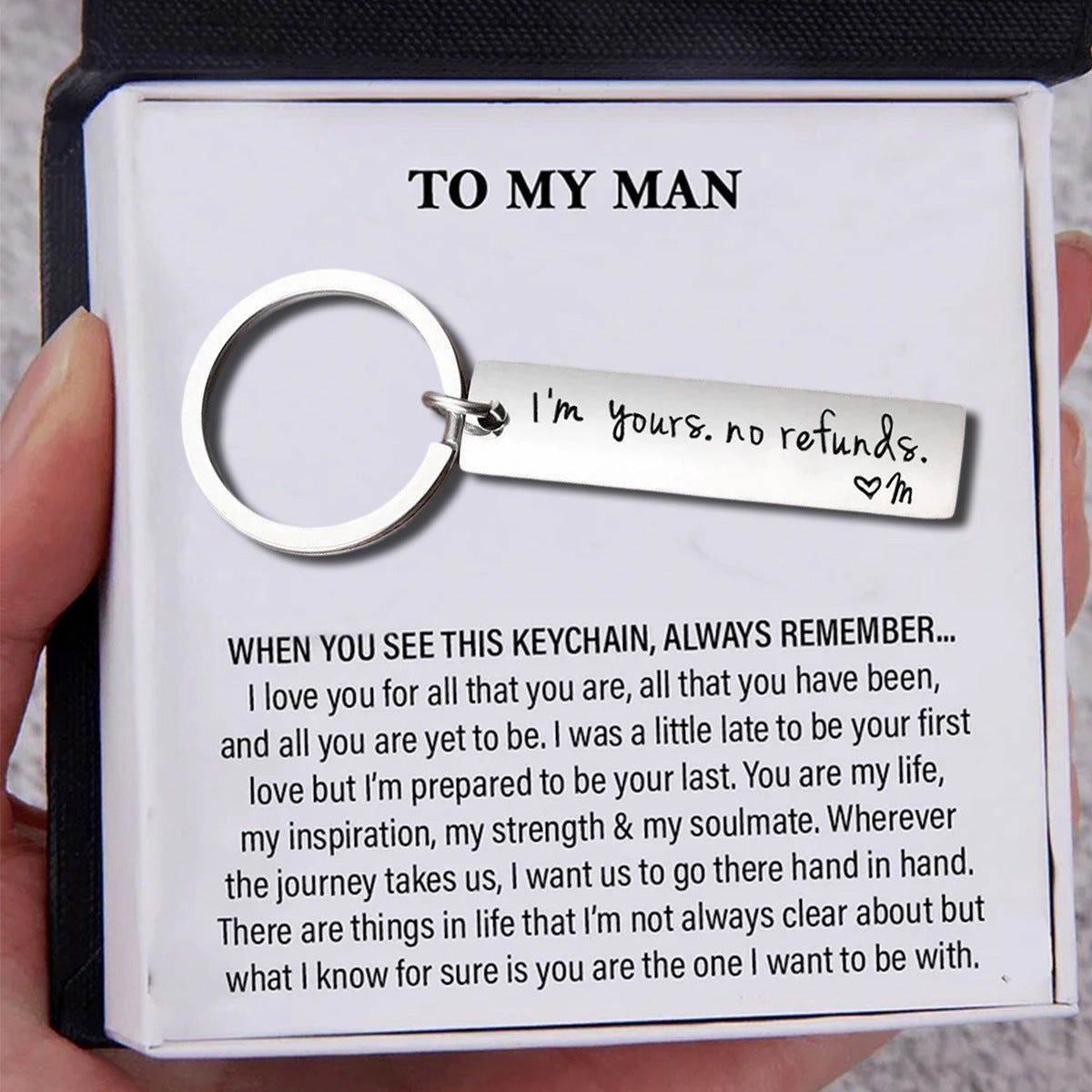 Personalized-I'm yours no refunds-Funny Couple Keychain Personalized Initial Keychain