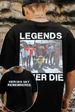 "Legends never die." 2-sided printed T-shirt