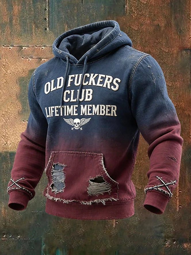 Men's 100% Bitter Old Fuckers Club Lifetime Member Vintage Print Casual Hoodie