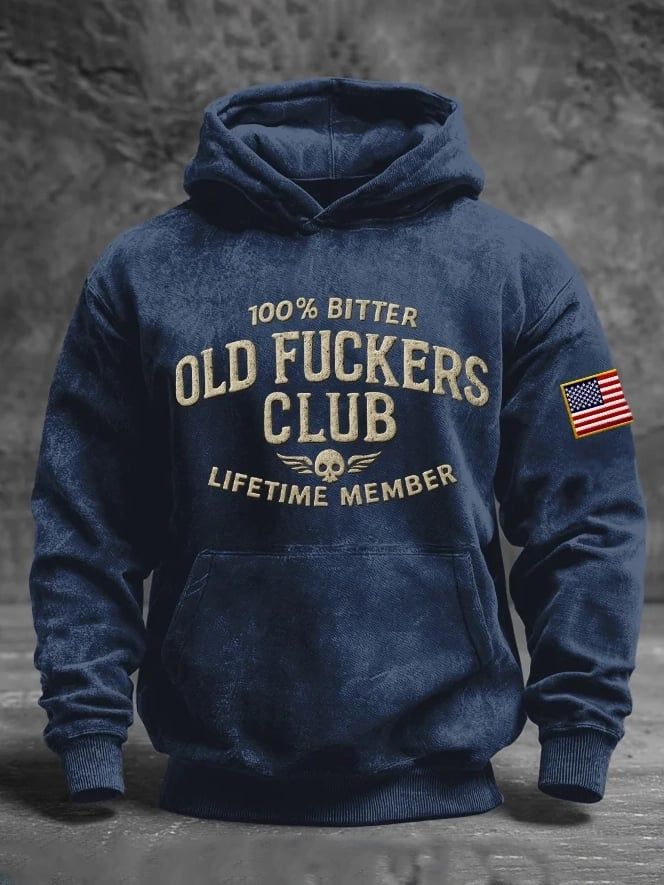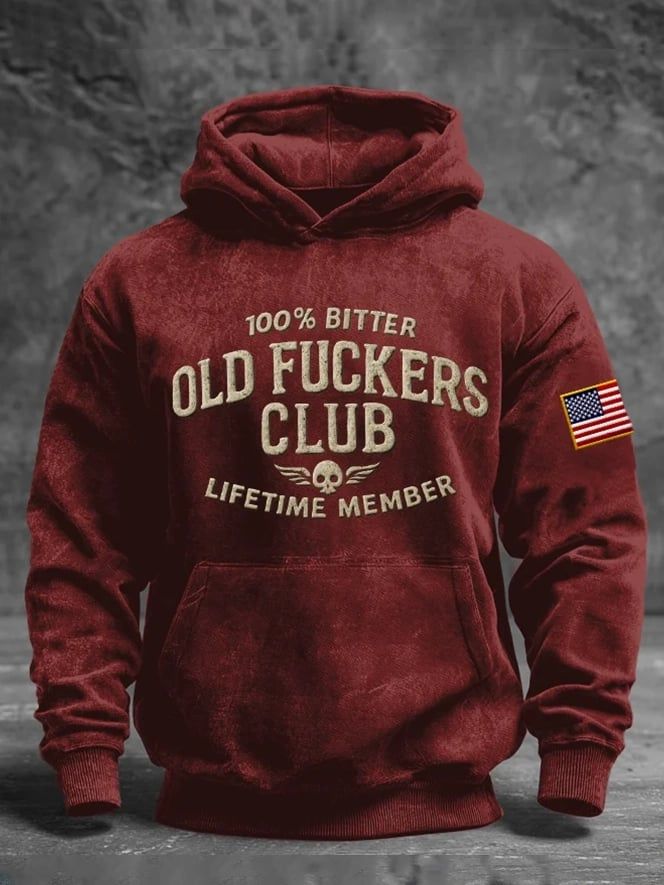 Men's 100% Bitter Old Fuckers Club Lifetime Member Vintage Print Casual Hoodie