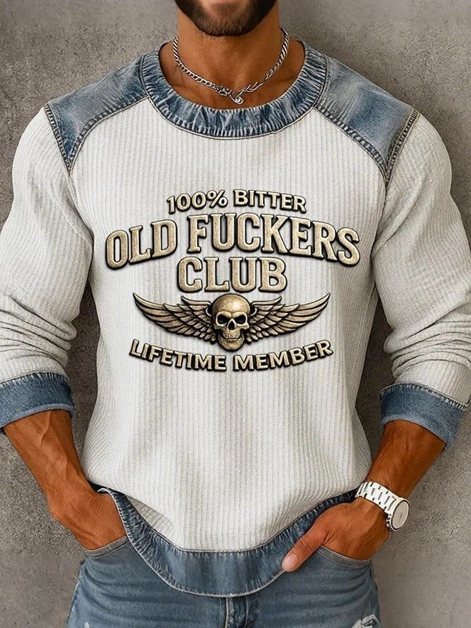 Men's 100% Bitter Old Guys Club Lifetime Member Vintage Print Casual Sweatshirt